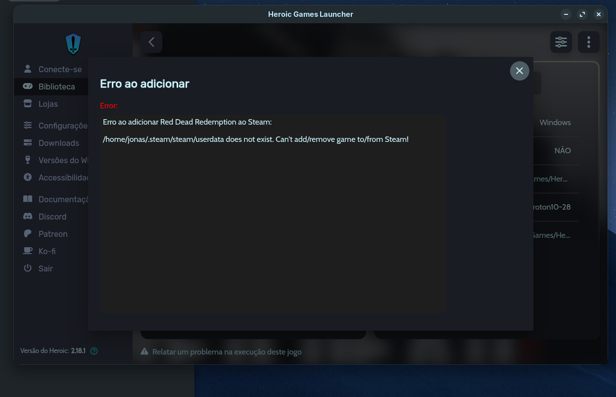 So que quando vou no heroic e coloco para adicionar a steam da erro