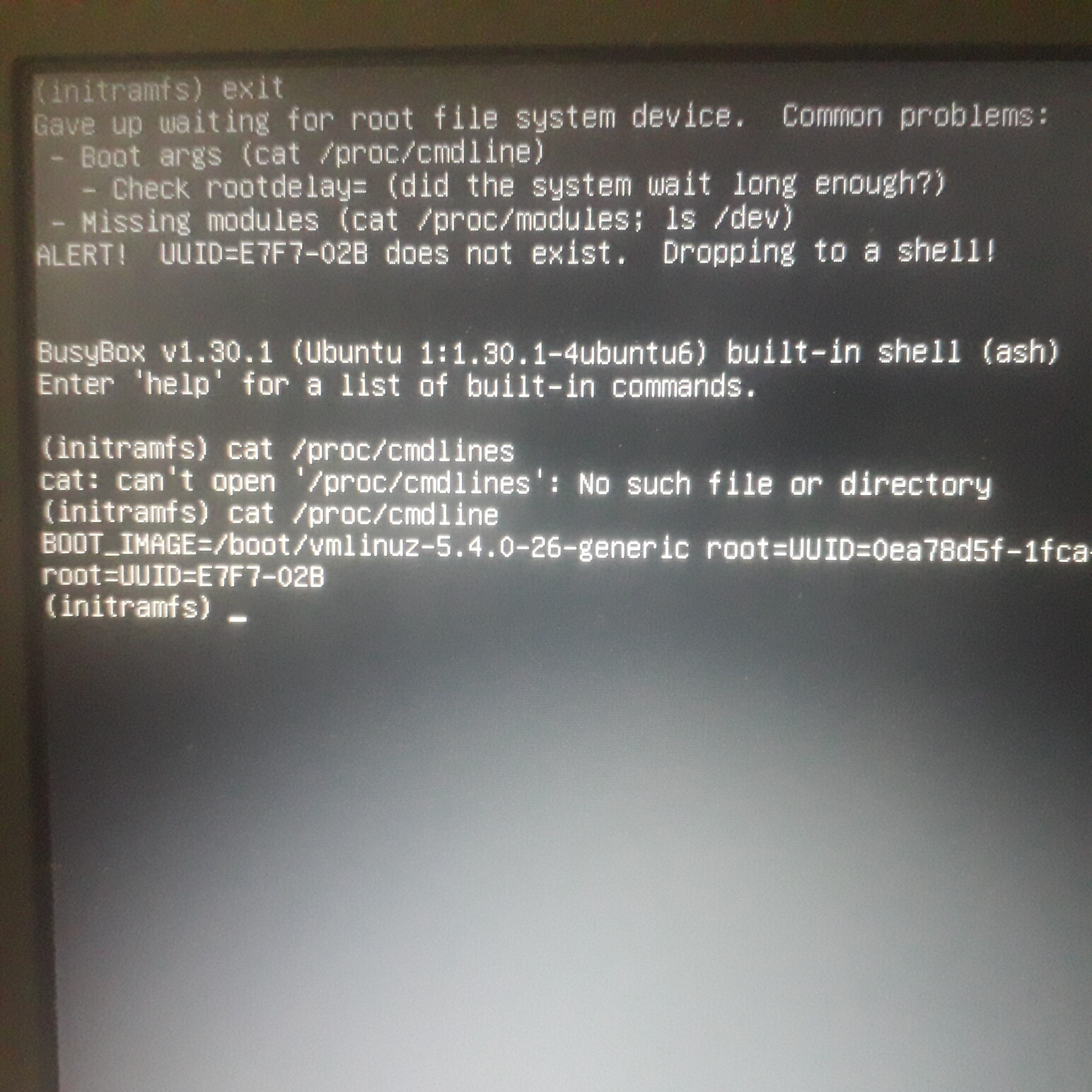 Pra conseguir iniciar o sistema, inicie o computador, no menu do grub apague o root=UUID=E7F7-02B que está no final da linha “linux”, de modo equivalente que eu explico nesse vídeo: