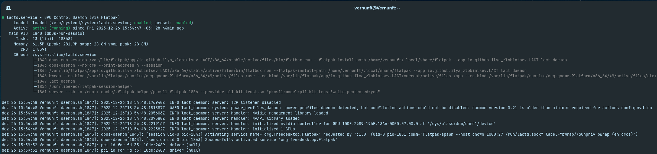 Saudações meus caros, sou novo aqui no Linux, estou tentando fazer um undervolt em minha RTX 3060 Ti, pelo software LACT, porém estou com o seguinte erro, alguém consegue me dar uma luz?