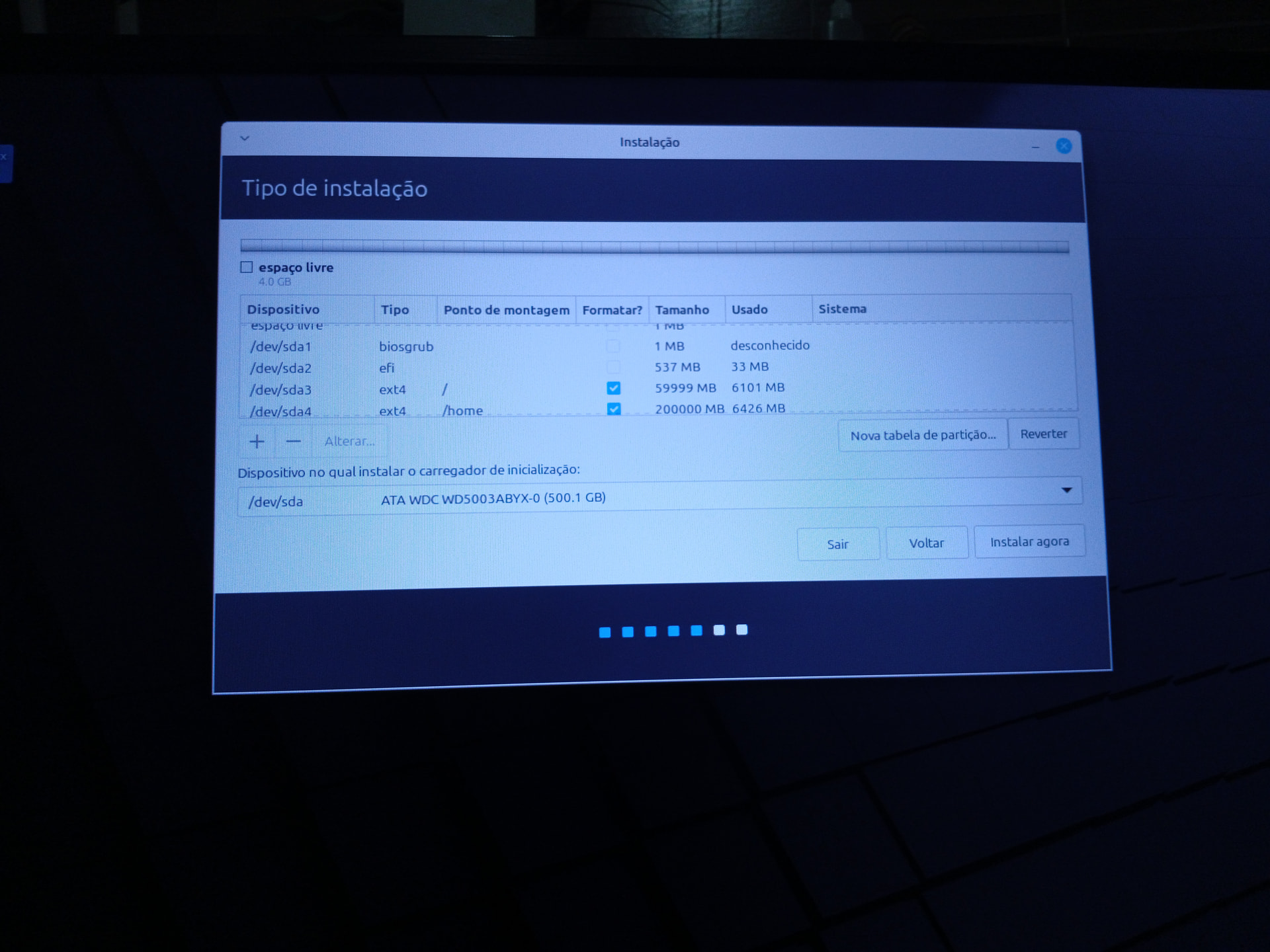 Quando for instalar, tire uma foto das partições.