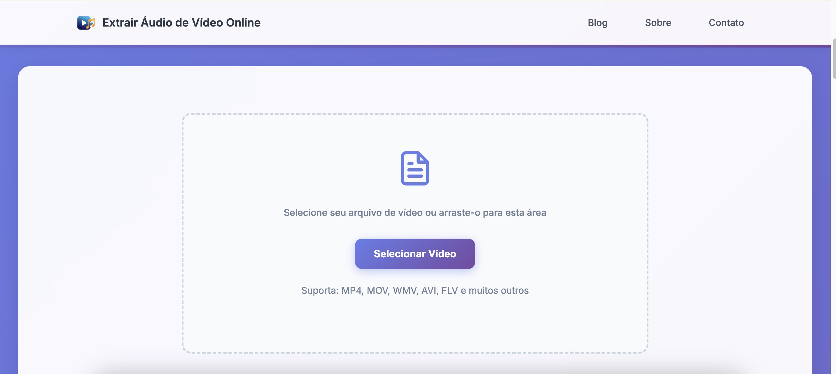 Fiz um site pra quem precisa de um jeito simples de pegar o áudio de um vídeo. A ideia é ser bem direto: você envia o arquivo, e o site te dá o áudio pra baixar. Sem precisar instalar nada, é tudo online.