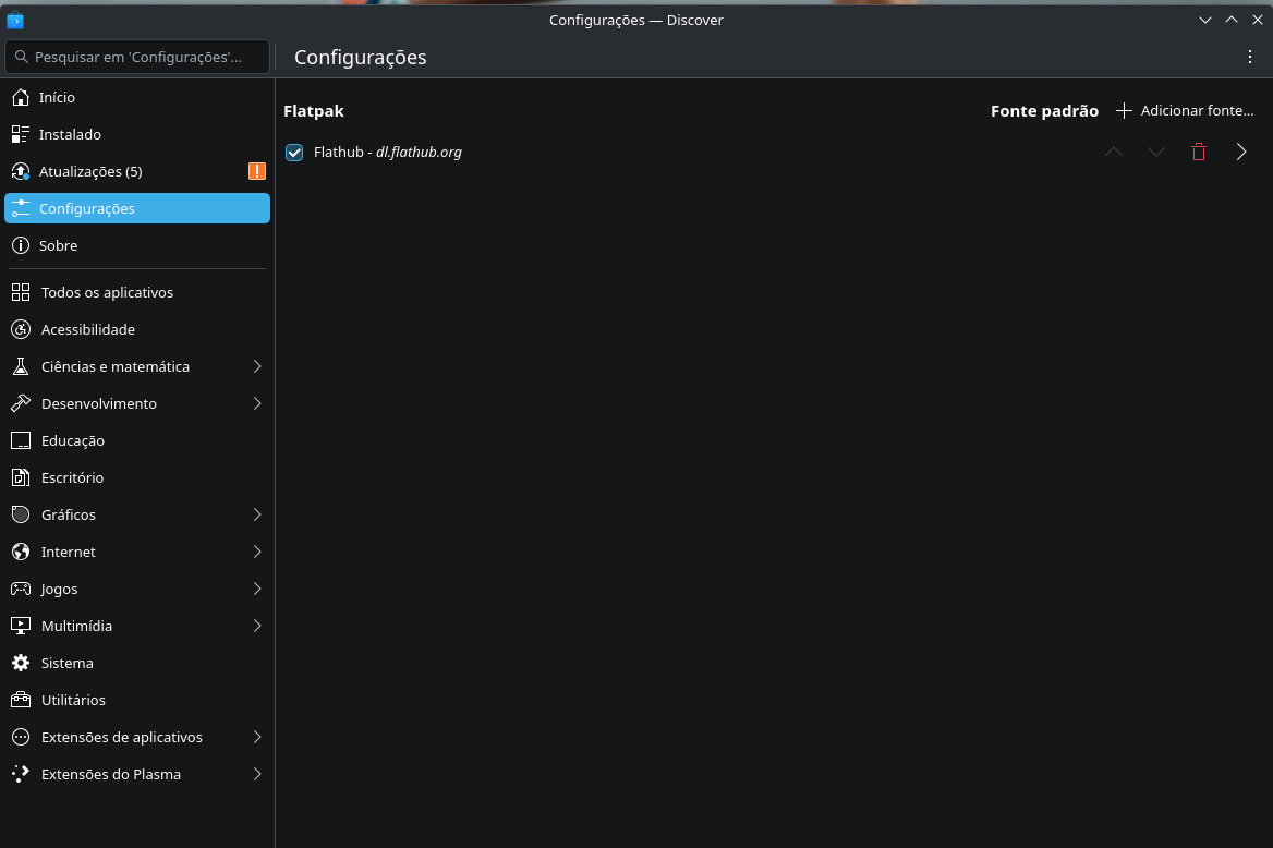 Não consigo achar apps no Discover que não sejam em Flatpak; já mexi nos repositórios, habilitando-os, mas mesmo assim não me aparece outras fontes para a instalação de aplicativos no Discover. O que tá faltando?