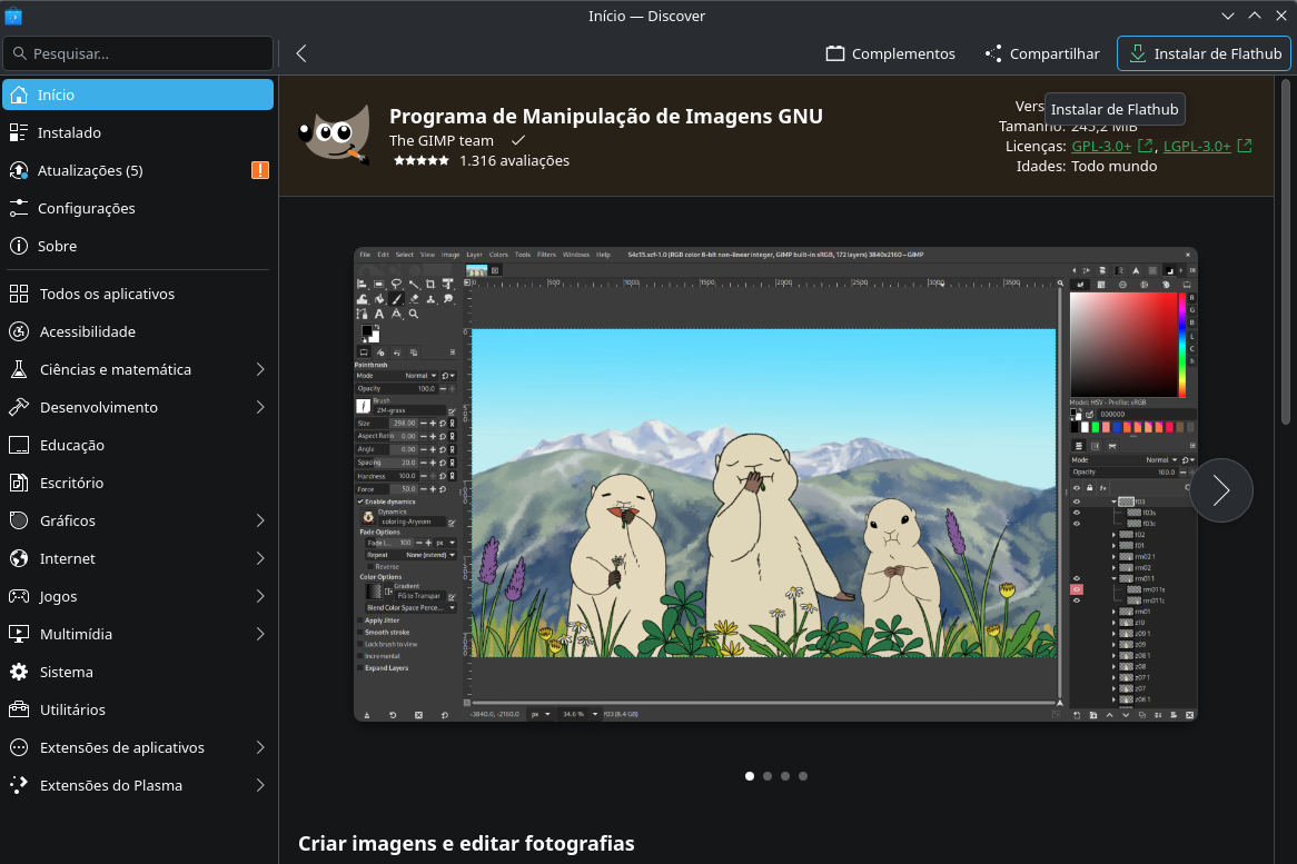 Eu instalei o packagekit, aí apareceu-me as atualizações dos apps; só achei estranho que não me mostram opções para instalar os apps a não ser do flathub. De qualquer forma, muito obrigado; estou usando o terminal e mexendo aos poucos.