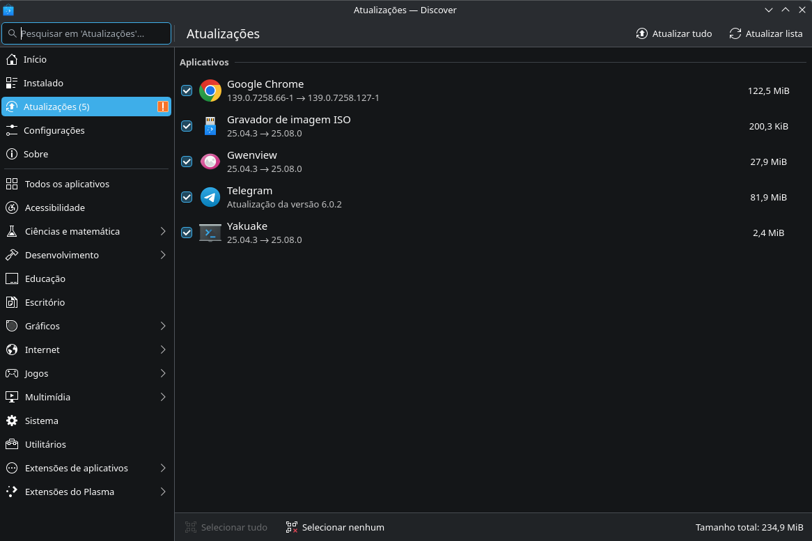 Evita usar a Discover para atualizar a base do Arch.