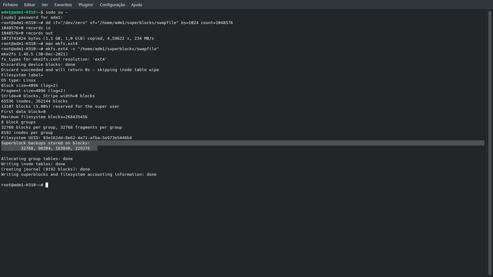 Eu tmb não faço ideia, eu disse acima e repito, nunca estudei como recuperar superblock.