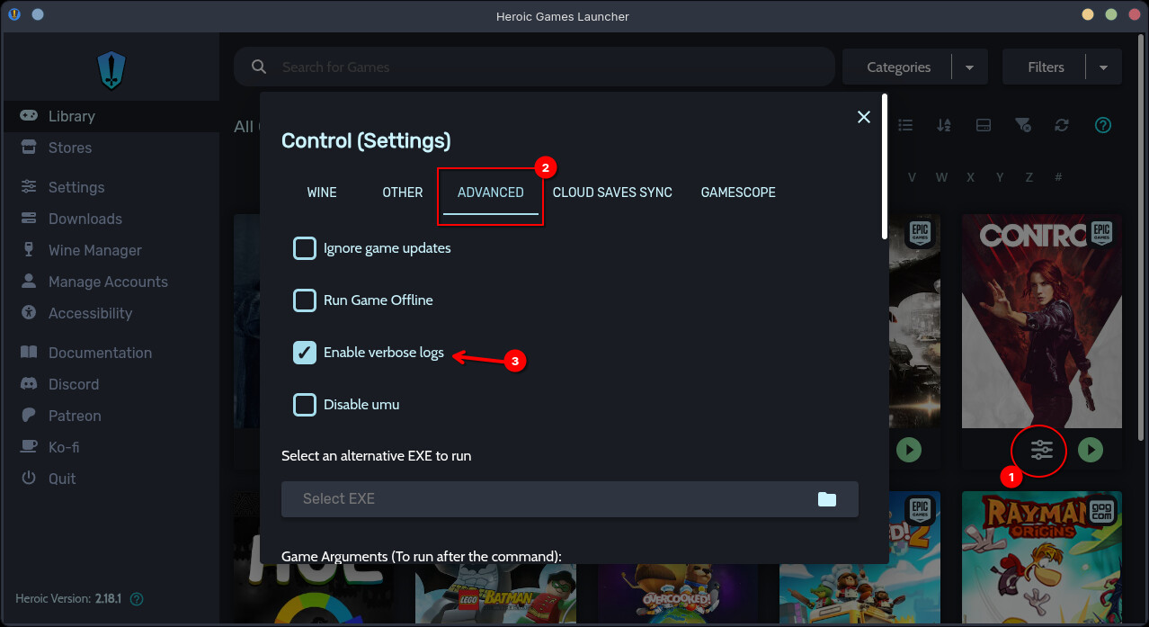 Tente iniciar o jogo com problema, e assim que der erro, vá em “Settings” → “Log”, selecione o nome do jogo que está com problema, e vá em “Upload Log File”; isso vai gerar um link que você pode colar aqui e poderemos analisar.