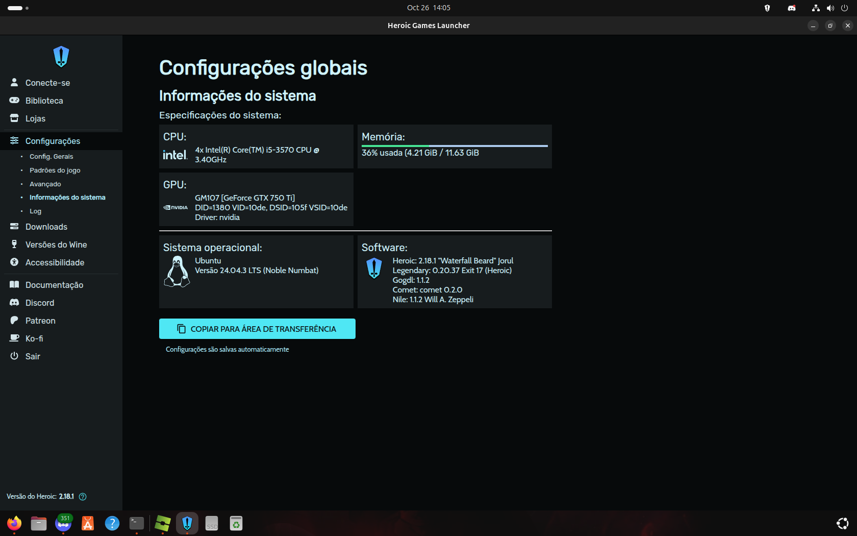 (No meu caso, Ă© Heroic Proton Flatpak, pois eu instalei por Flatpak; no seu caso, vai ser um pouco diferente).