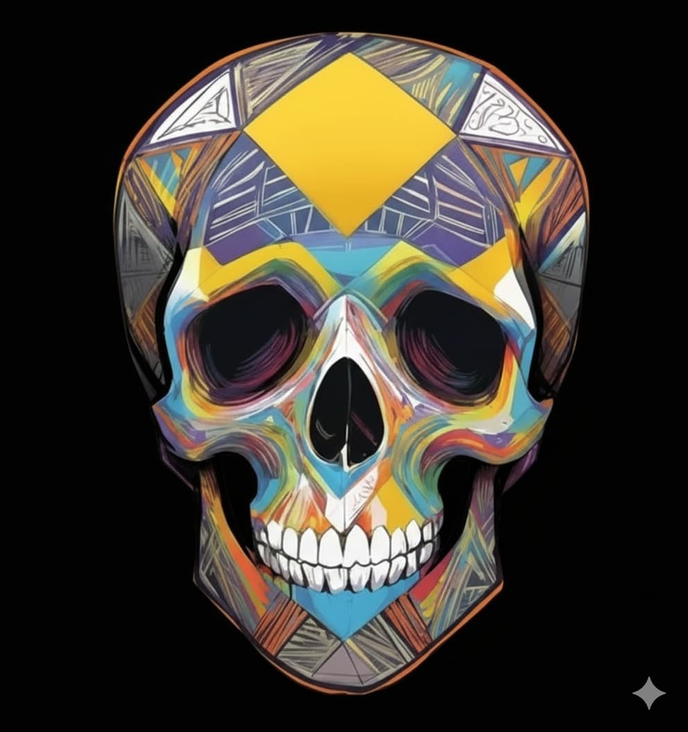 E pedi para a IA selecionar a imagem da “caveirinha” e criar uma nova igual de frente para a camera e o resultado ficou assim.