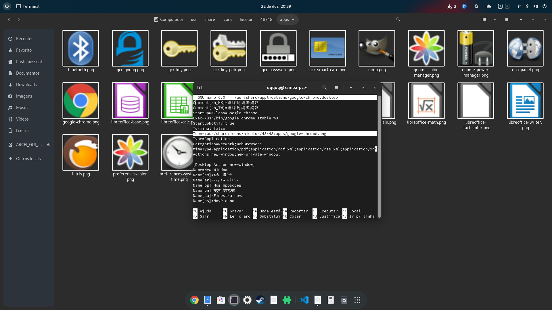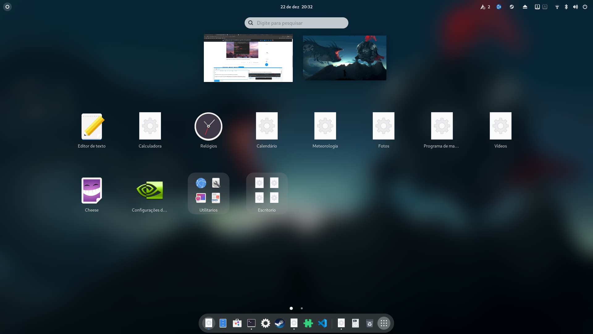 Porém, estou com um problema meio bizarro, após eu instalar alguns app’s, percebi que no grid de aplicativos do gnome não estão aparecendo os seus ícones correspondentes.