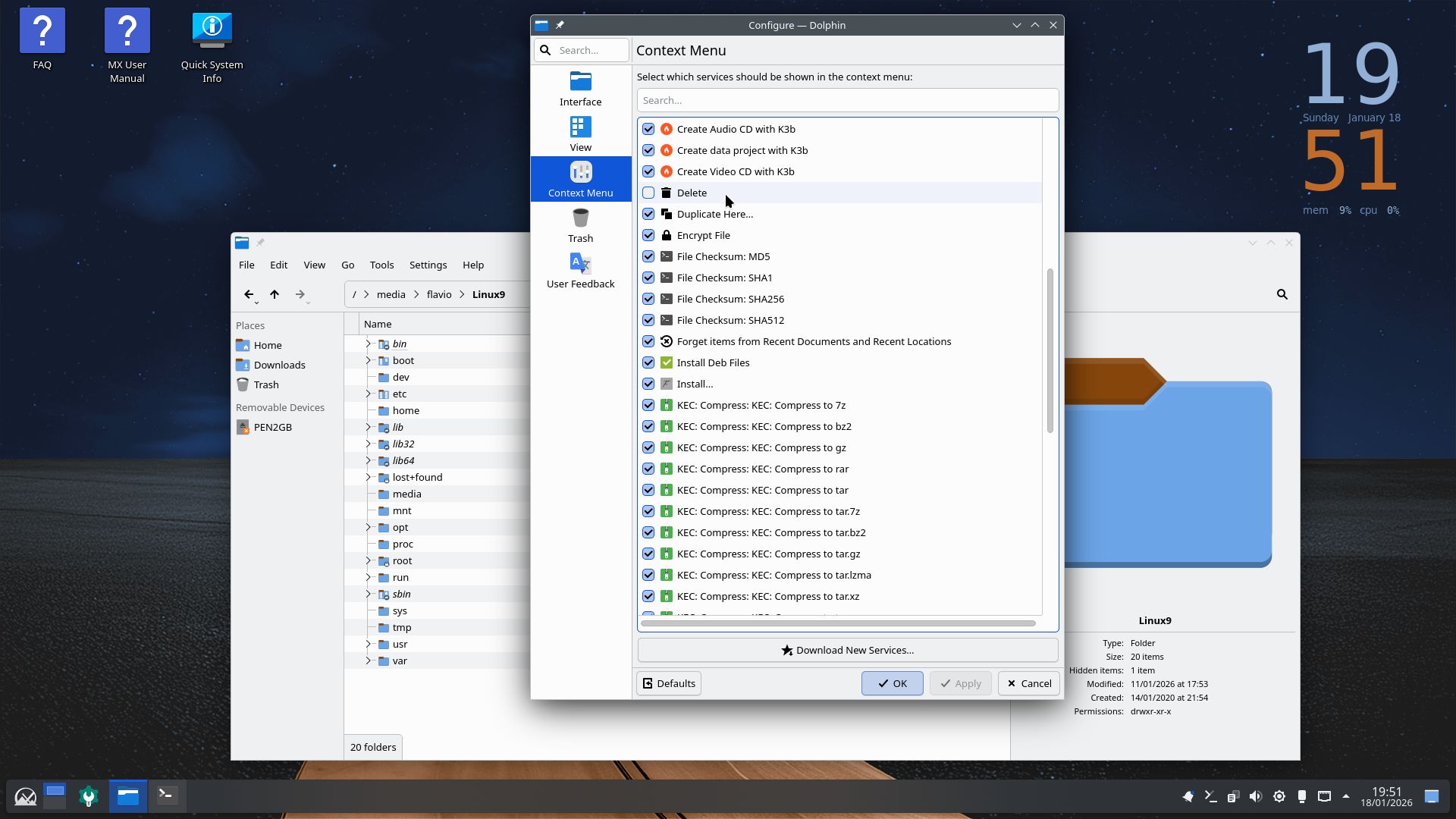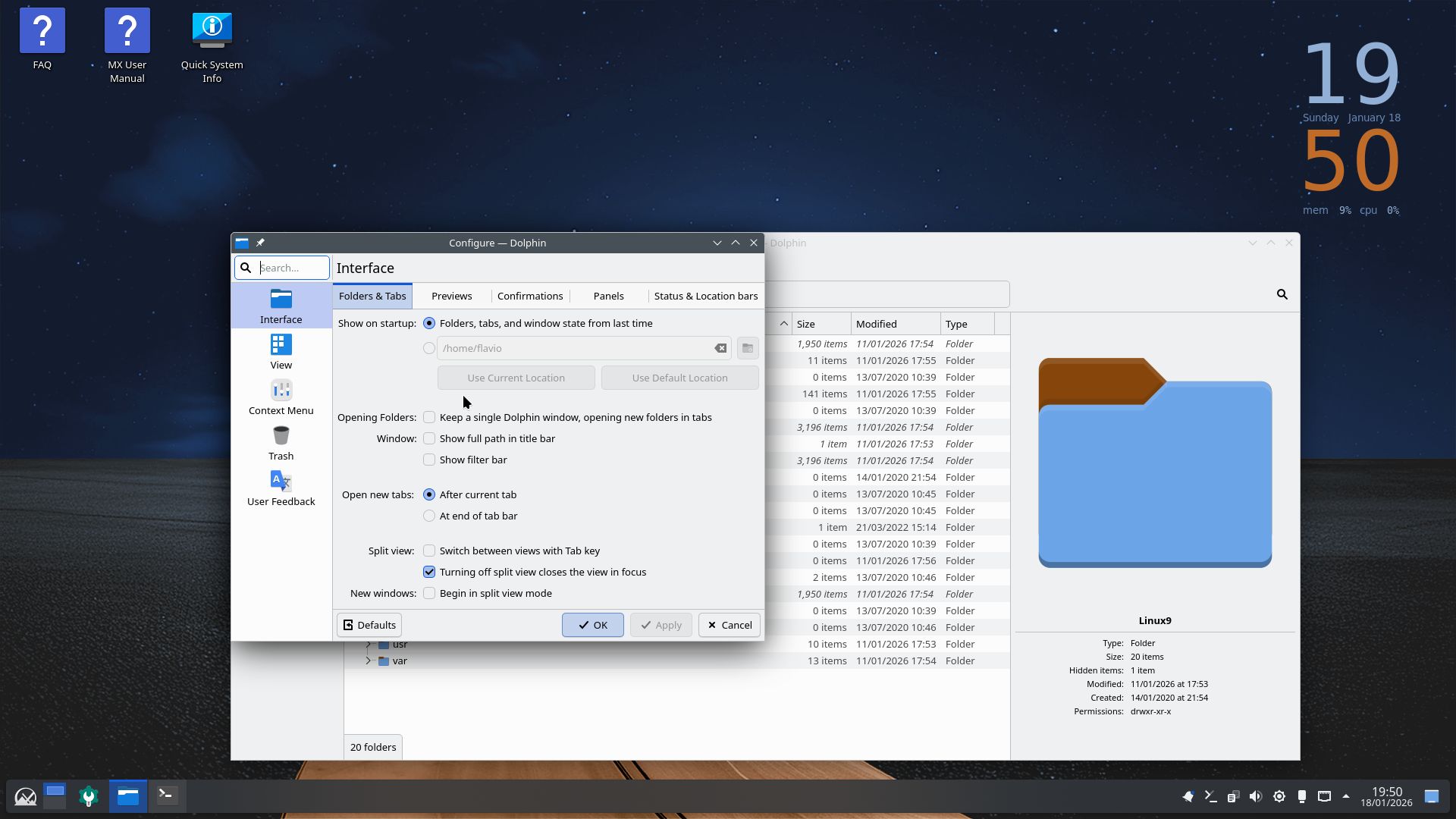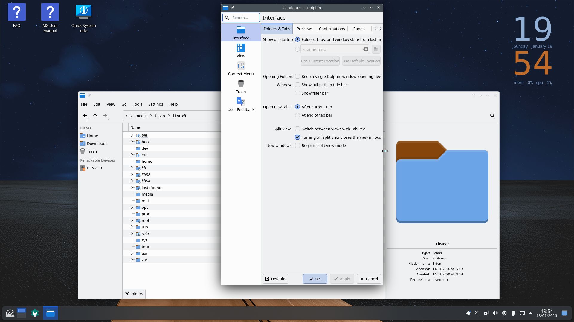 Ao reabrir o Dolphin… ele foi para a posição em que coloquei a sub-janela de configurações: