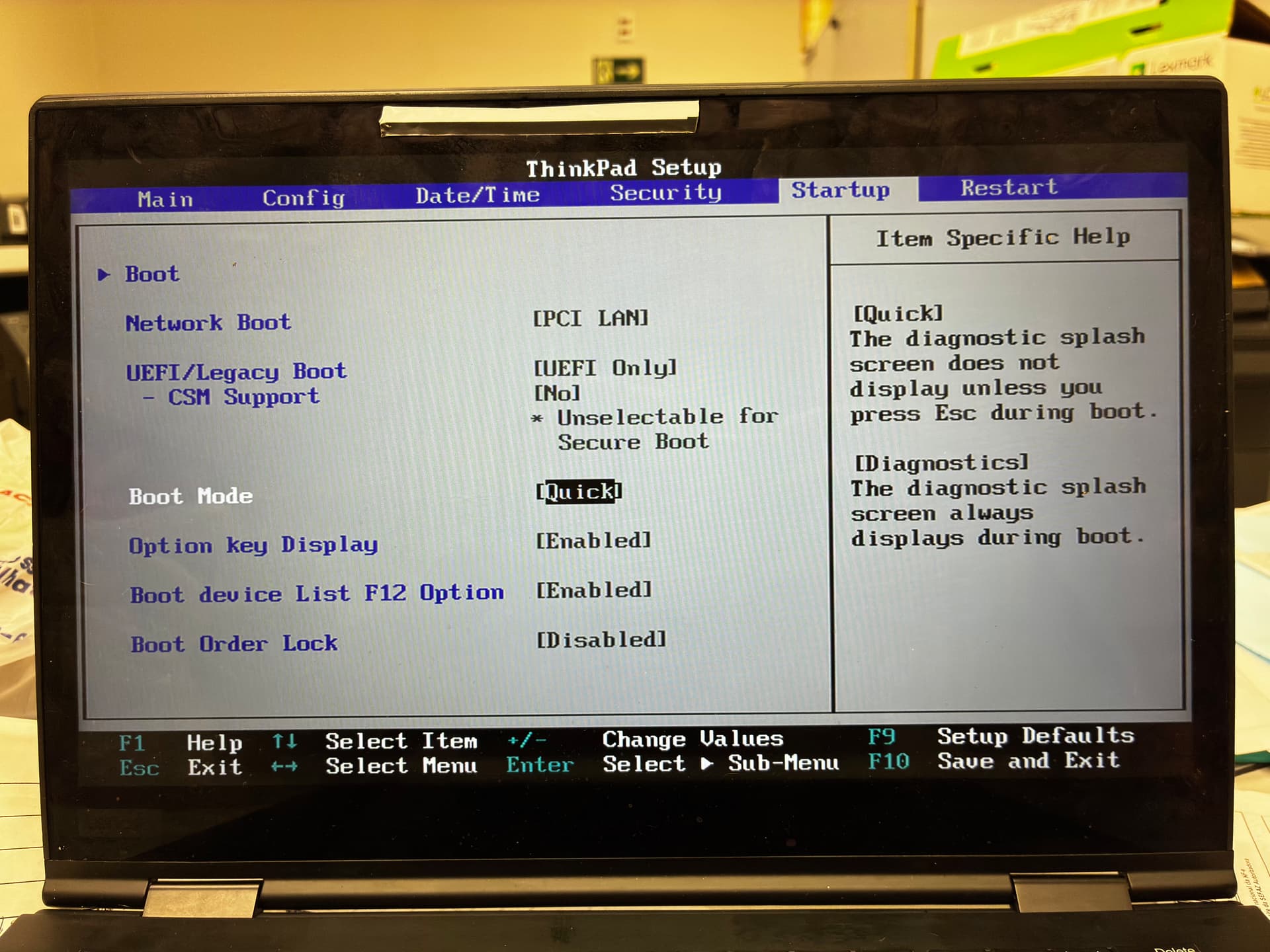 Sempre usei Arch Linux no meu computador, normalmente desativando o Secure Boot. Não entendo muito do assunto, mas sempre consegui instalar facilmente usando o Archinstall. Recentemente, comprei um notebook ThinkPad X1 Yoga na OLX, que veio com a BIOS bloqueada por senha. O vendedor não soube me informar a senha, mas mesmo assim decidi comprar. Consigo acessar a BIOS ao pressionar Enter quando solicita a senha, mas só consigo visualizar a bios sem possibilidade de alterar as configurações do boot, vi que está configurado como “UEFI only”.