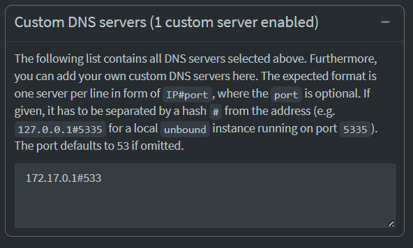 Recomendo alterar a configuração substituindo o endereço 0.0.0.0 por 127.0.0.1, a fim de garantir a comunicação correta entre o Unbound e o Pihole. O endereço 127.0.0.1 representa o loopback da máquina local, permitindo a comunicação direta entre serviços no mesmo dispositivo. Em contraste, 0.0.0.0 não define um endpoint específico, sendo mais apropriado para situações em que um serviço deve escutar em todas as interfaces de rede. Assim, ao configurar o Pihole para utilizar o Unbound como DNS recursivo, o endereço correto a ser utilizado nas configurações é 127.0.0.1.