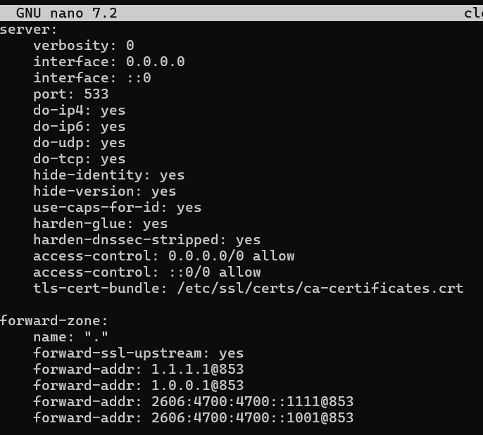 forward-addr: 2606:4700:4700::1111@853#cloudflare-dns.com