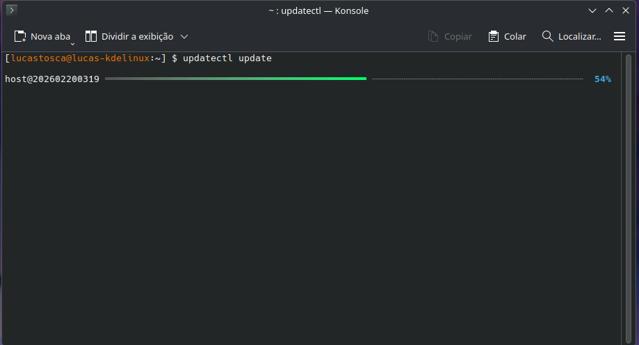 Apesar do correto ser usar o Discover para atualizar o sistema, essa barra de progresso no terminal ficou muito bonita por sinal… detalhes que fazem diferença!