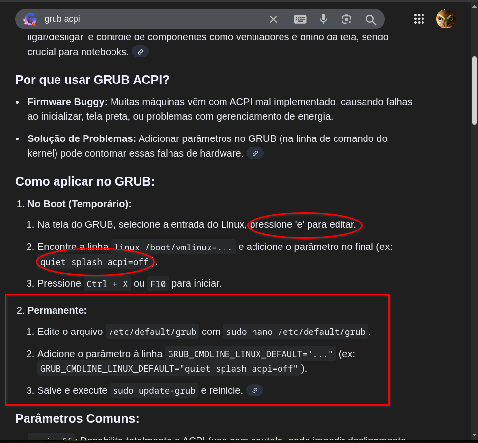 Esta “resposta da IA do Google” resume uma dica que eu tive de seguir, em 2013: