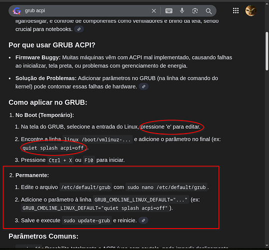 O que a IA do Google diz, pode ser testado durante o Boot – onde fiz 2 marcas Elipse.