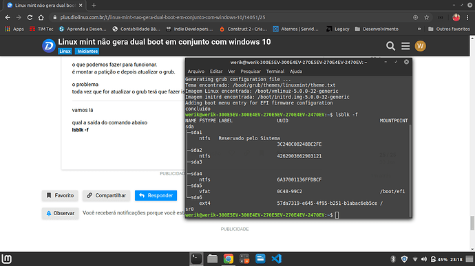 mudei o comando e n apareceu nada na tela, e eu criei um particionamento especifico apenas para o linux, responde a pergunta anterior