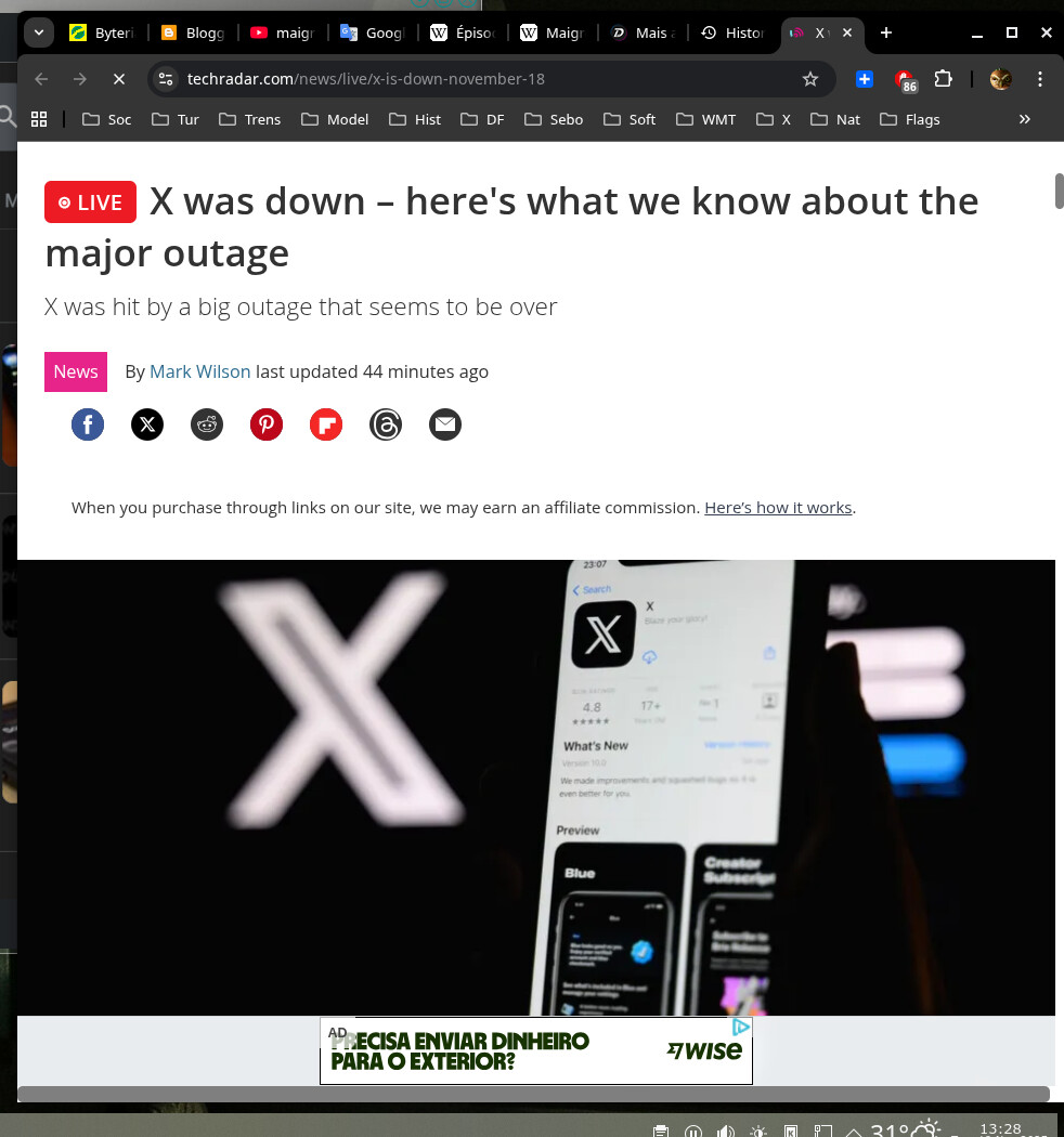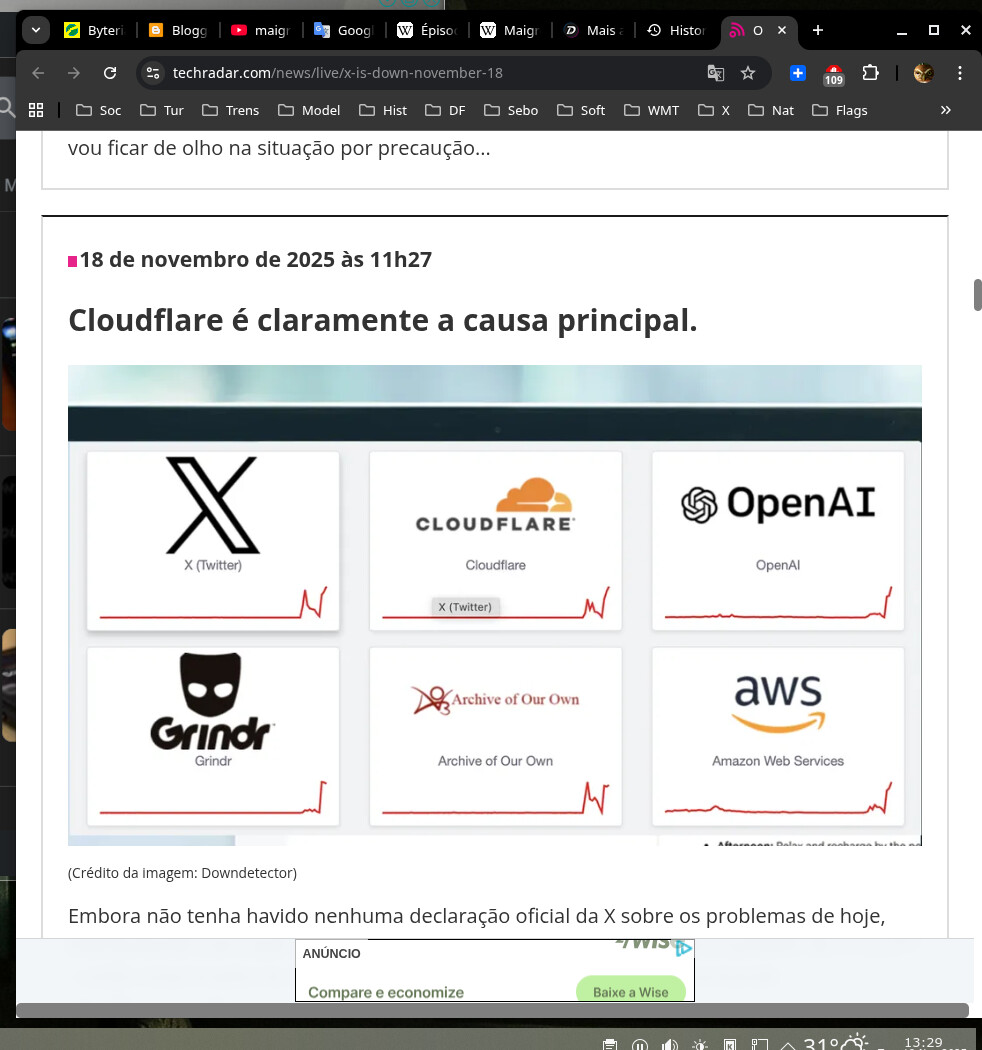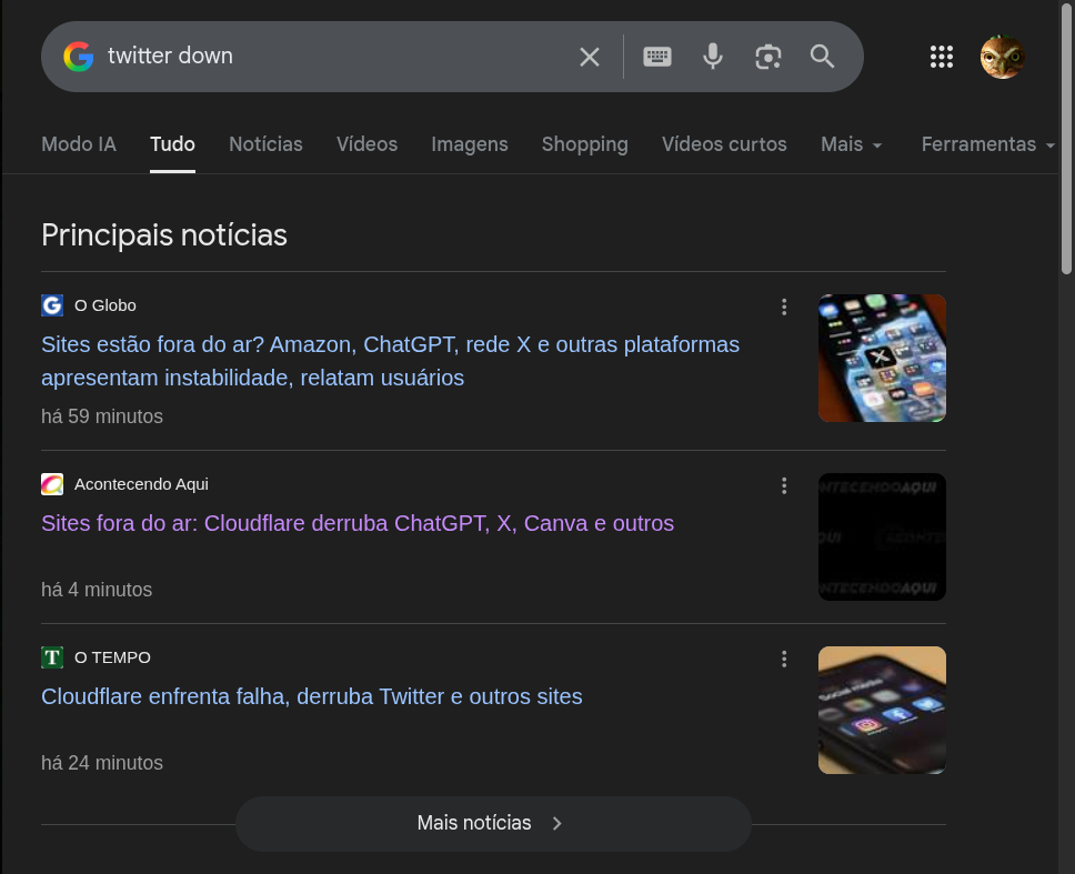 Notei por volta das 10:00, quando tentei entrar no Xwitter e apareceu um aviso de Cloudfare etc. — Googlei às 10:01…