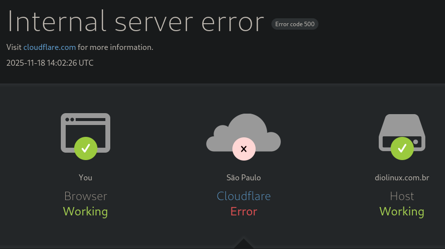 A Cloudflare caiu, mas acho que foi somente em São Paulo. Os sites que cuido não foram afetados.