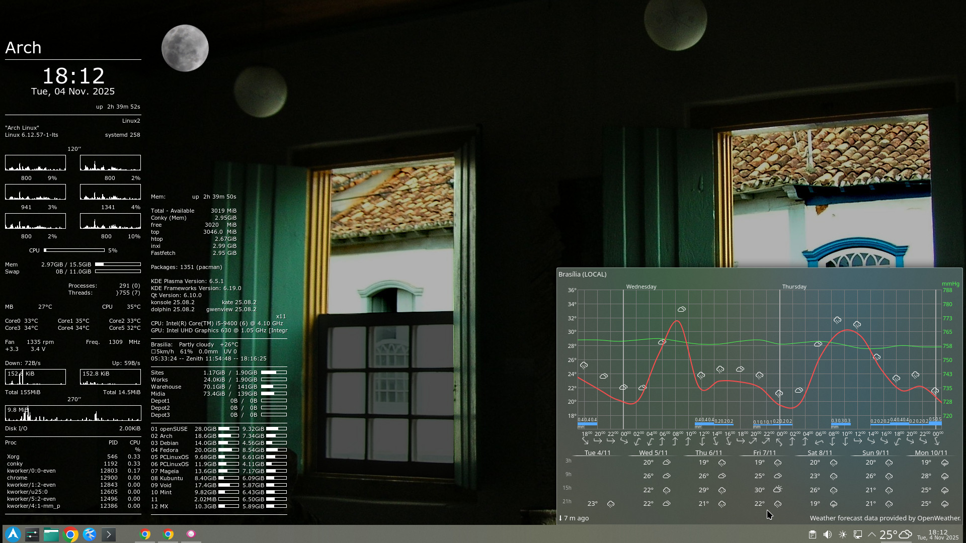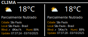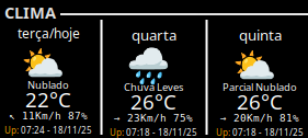 3- CLIMA,aqui fica o alguns dados do clima, ele busca por IP, entao independe da localidade, mostra o HOJE e o AMANHA, com base no mesmo horario