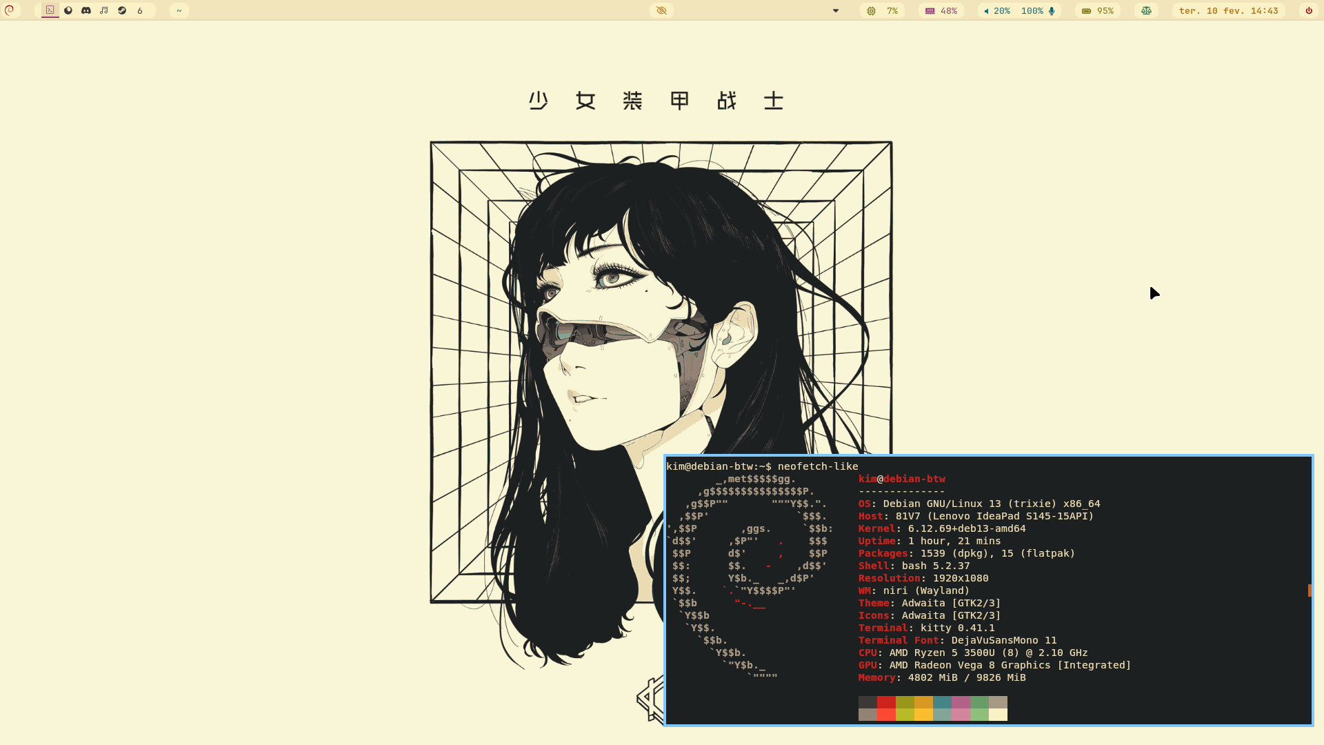 É realmente muito bom! Eu conheci ele esse ano, antigamente eu usava Sway pra Wayland compositor, nunca gostei muito do Hyprland, mas o Niri veio pra tomar o lugar de meu favorito.