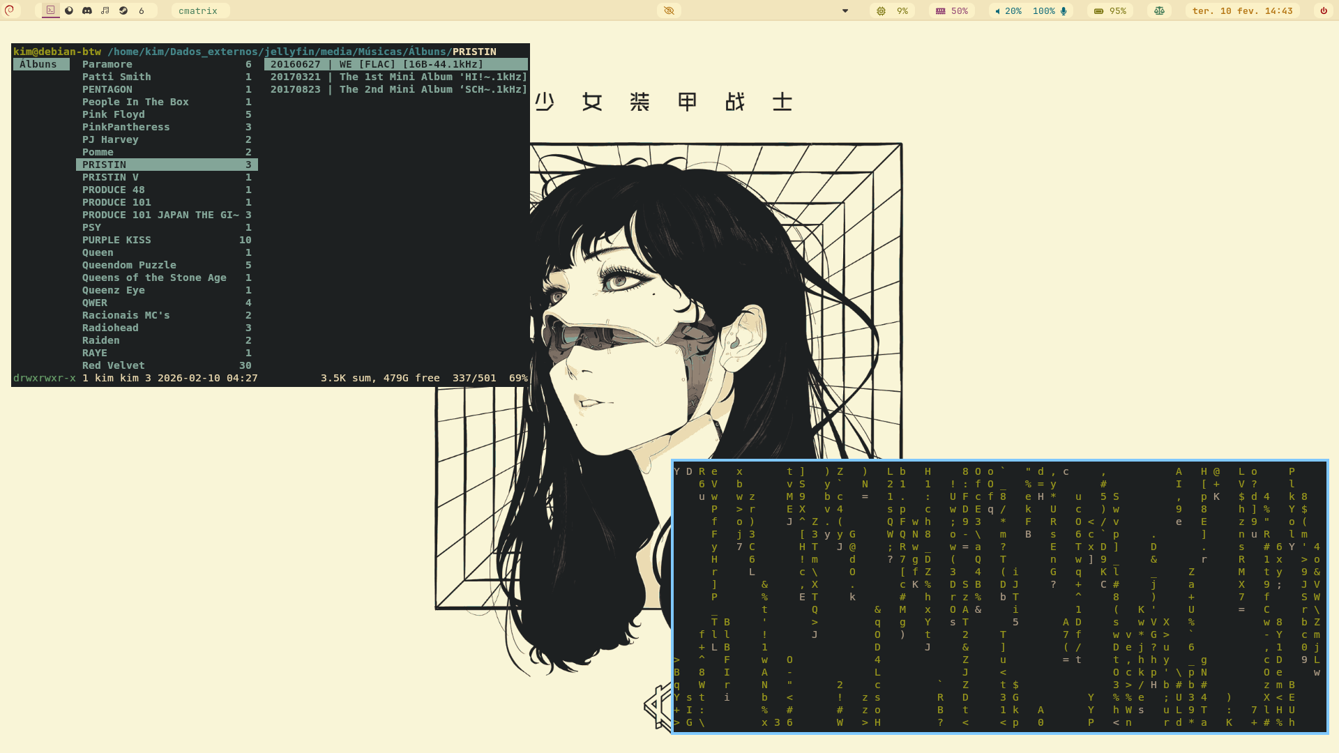 Mas se um dia quiser voltar a testar algum desses tiling, dá uma olhada no DankMaterialShell e no Noctalia Shell. Eles tem a proposta de montar um ambiente completo a partir de um desses tilings, é bem prático, tu escolhe qual tiling quer usar por baixo e ele configura tudo