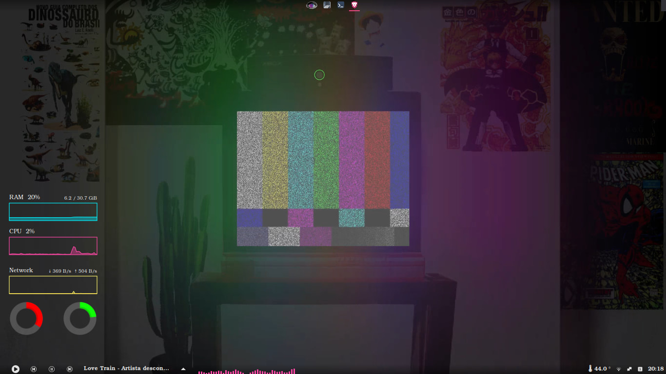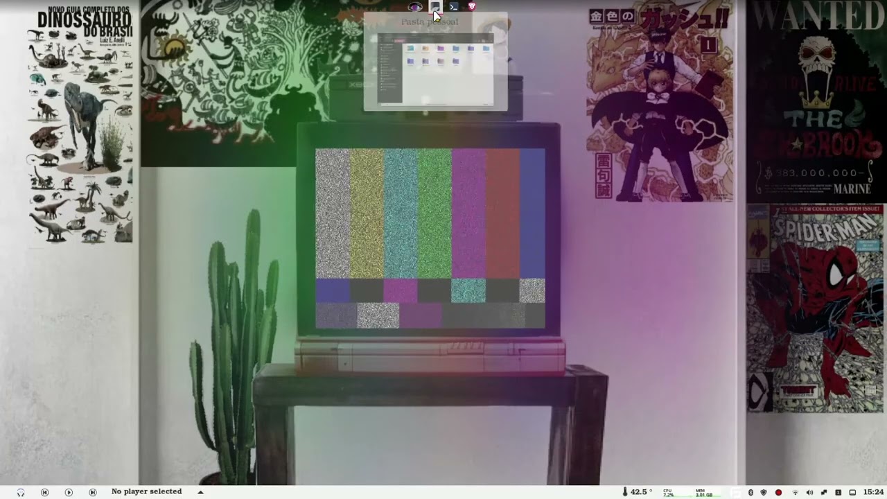 Meu cinnamon com o applet que eu fiz mais algumas configurações de transparência e alguns desleks. Tenho que dizer que meu hiperfoco em linux está a milhões