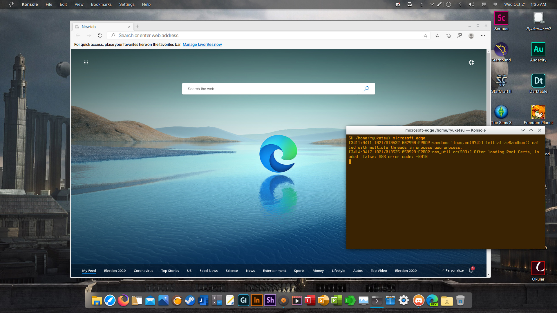 Instalei o Edge e tomei um susto. Era a tela de erro do Wine. Depois abri pelo terminal para confirmar. Foi só um susto mesmo. xD