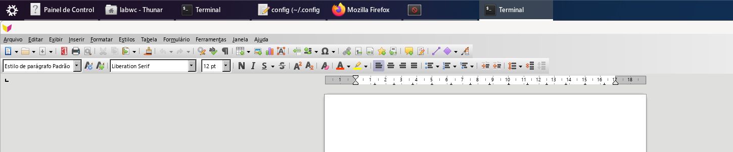 (Prints tirados numa sessão do labwc aberta dentro do KDE Plasma Wayland – dá para fazer a mesma coisa no X11 enquanto experimenta com o setup até ele funcionar como desejado).