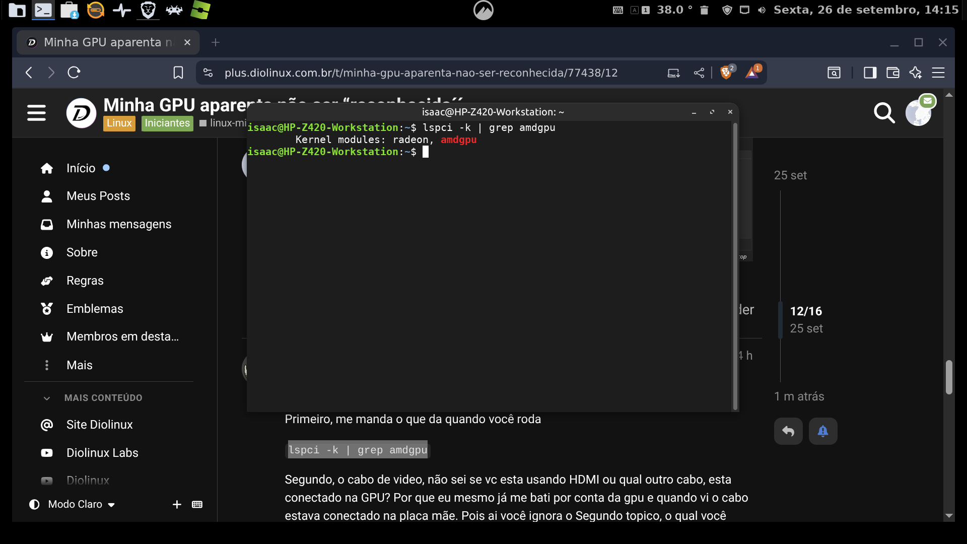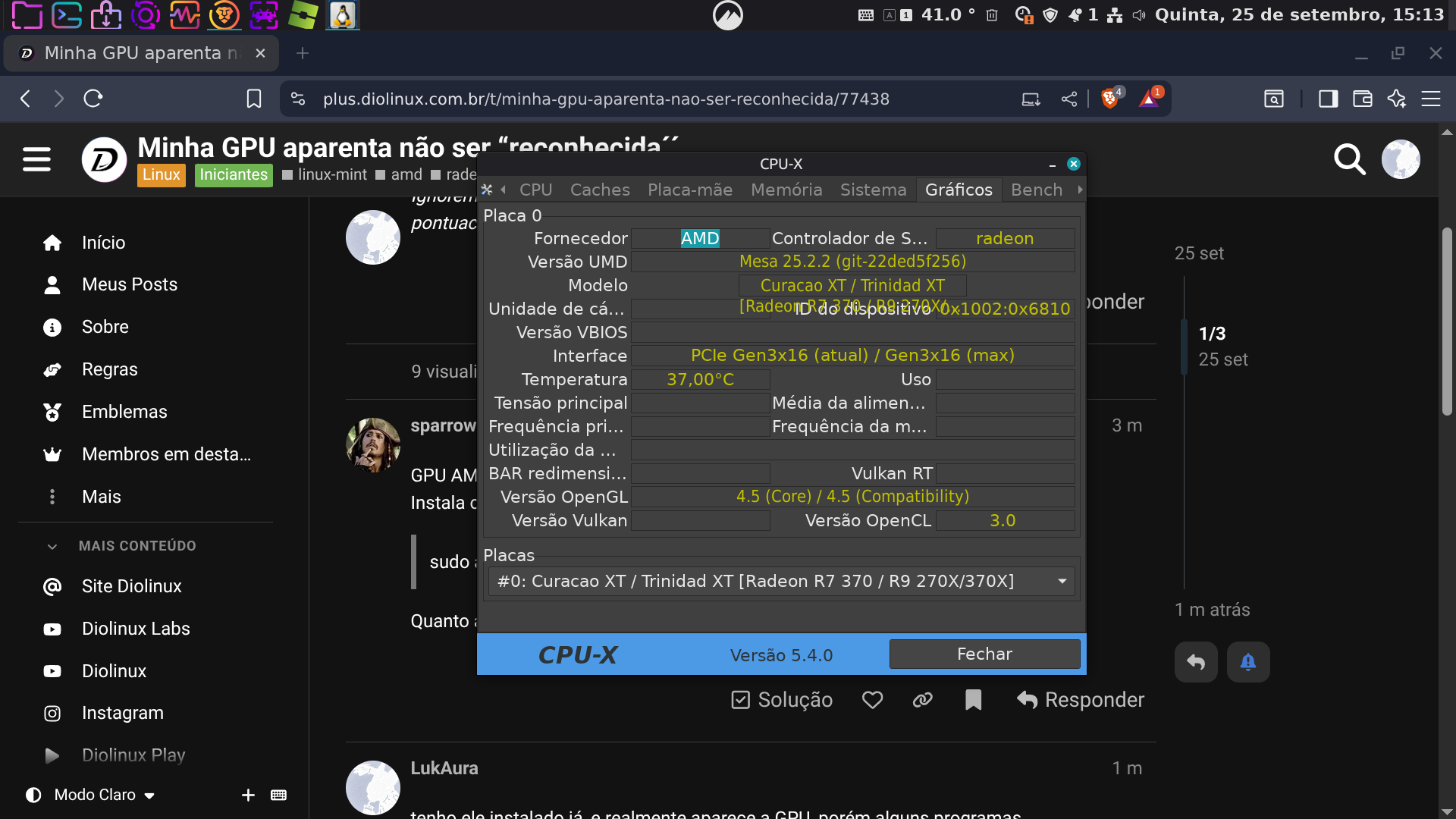 Sou novo tanto no linux quanto na comunidade Diolinux, bem eu vou ser bem claro, nunca usei linux antes, então nao sei se preciso baixar algum driver, coisa do tipo. minha GPU é uma “AMD Radeon R9 370” (Ao menos segundo o sistema) aparentemente, alguns programas nao utlizam da GPU, mas sim do gráfico integrado do processador (Eu acho)
