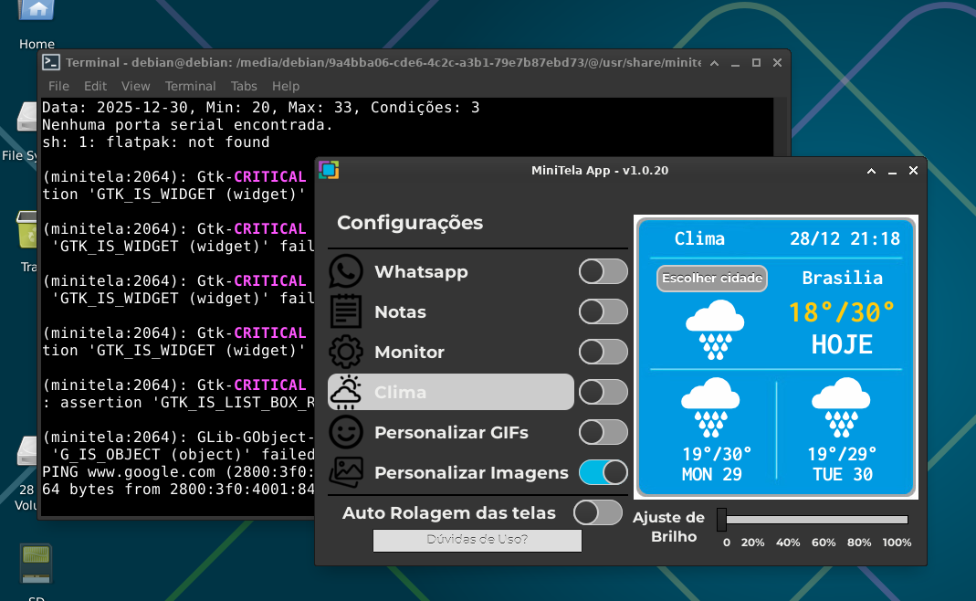 Em relação à minitela, vocês conseguem alterar a imagem que aparece na minitela? Até peguei a pasta que estão os arquivos .jpg, mas mesmo alterando os arquivos e aparecendo no aplicativo ela não vai para a tela. No Windows sei que funciona, mas no Linux não consegui ainda. Estou utilizando o Policorp mesmo