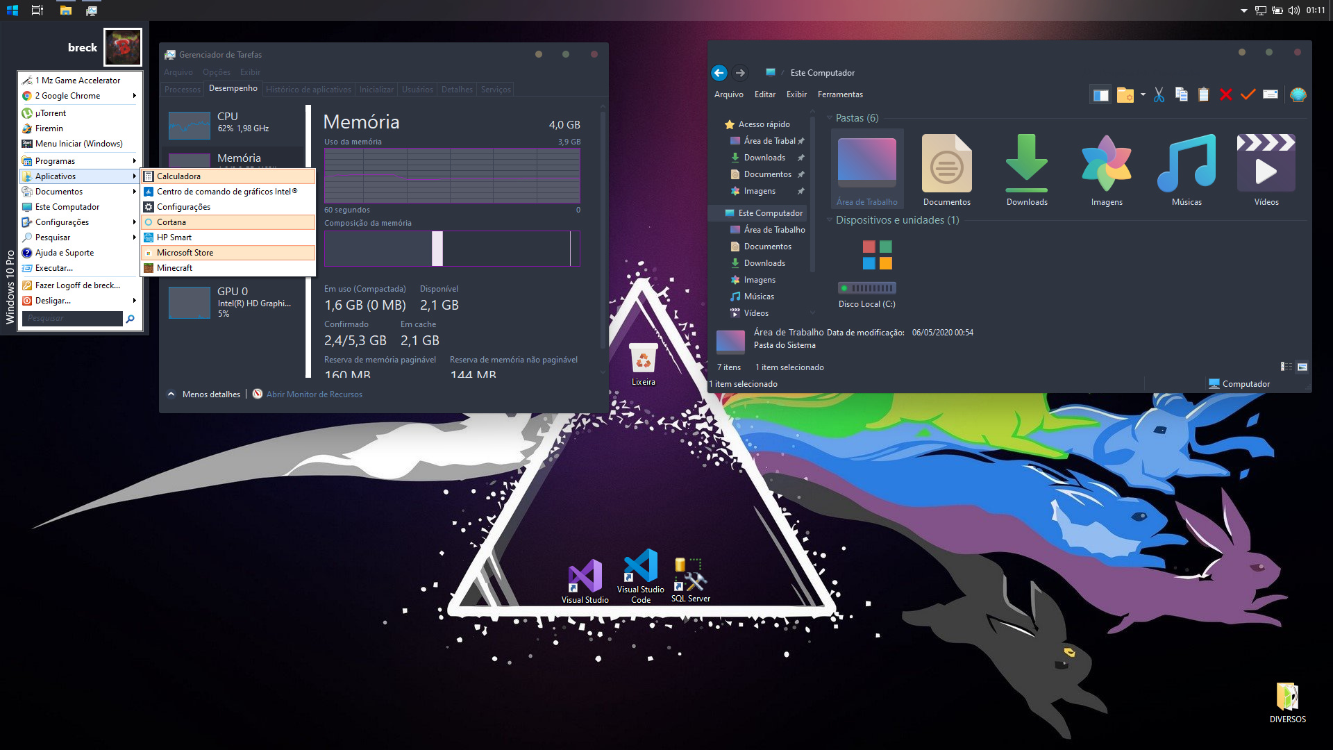 Atualmente não estou usando mais Windows, mas esse print não é tão antigo, e só para não ficar de fora do post, rs.