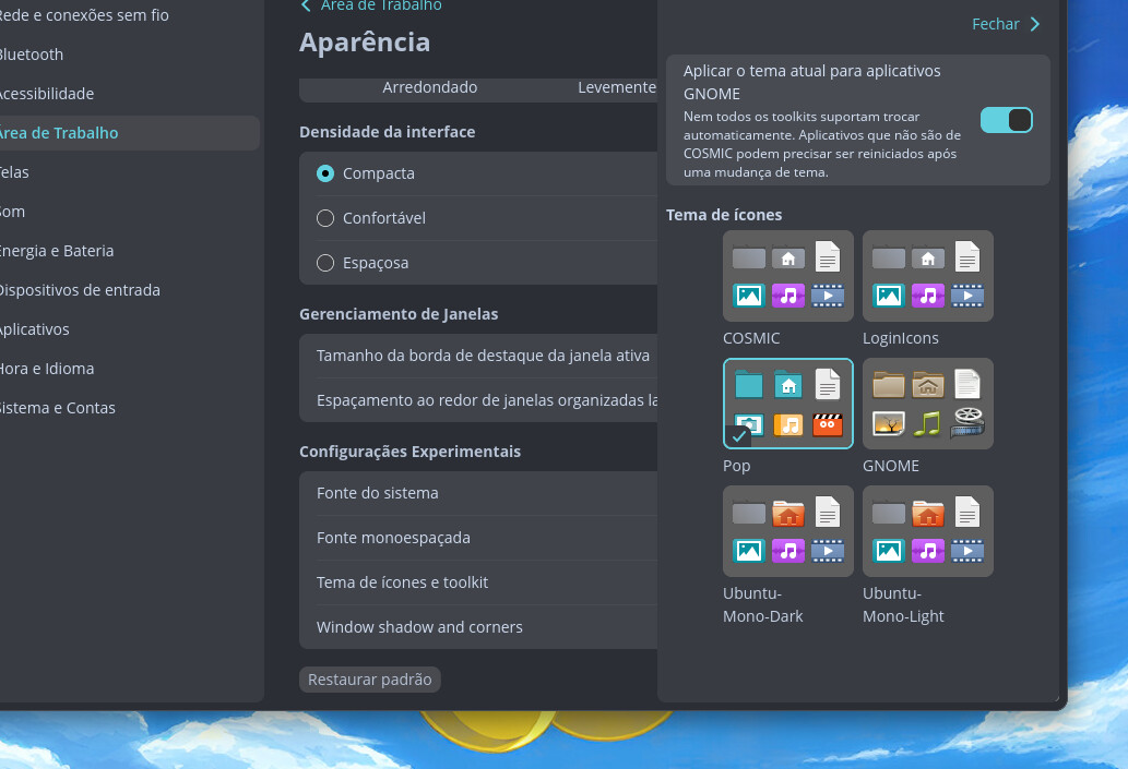 Eu tentei instalar uns temas de ícones no Pop 24.04 - Cosmic e, como não gostei, excluí eles.