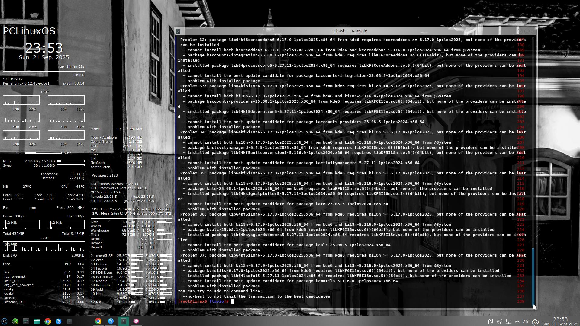 Como essa migração tinha certo potencial de causar problemas, há mais de um ano eu já deixo uma aba do Chrome aberta no Fórum do PCLinuxOS – ou, mais exatamente, na seção “KDE Plasma 6”, com vários tópicos bem animados. – Ver o que anda acontecendo, antes de disparar uma atualização, não custa nada, e pode evitar algumas dores de cabeça: