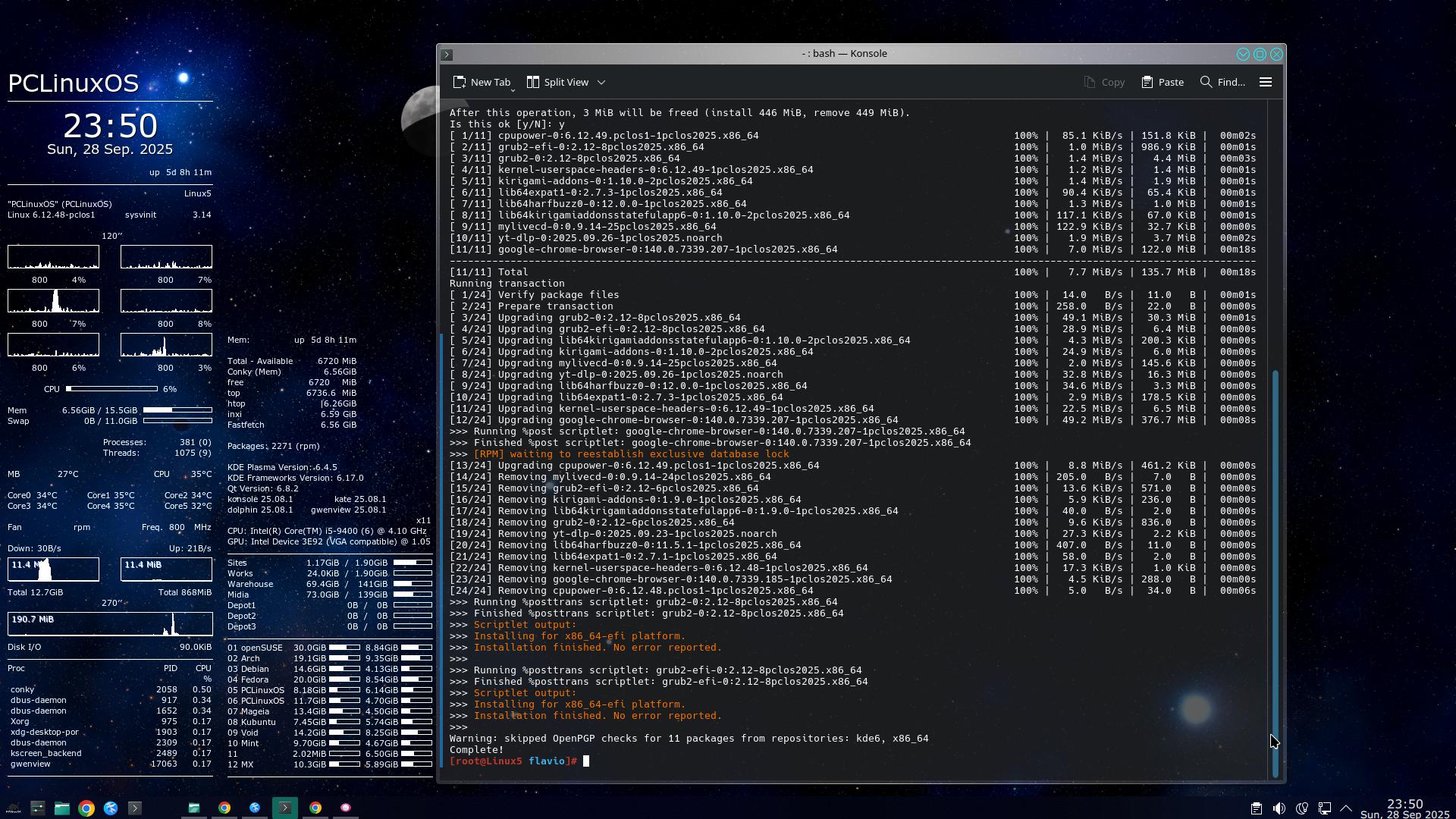 Não gosto de botar em risco uma instalação que está funcionando – e meu PCLinuxOS com KDE Plasma 5 está funcionando perfeitamente – exceto que nunca consegui instalar o Google Earth Desktop (mas posso usar o GE Web e o Google Maps, sem qualquer dificuldade).