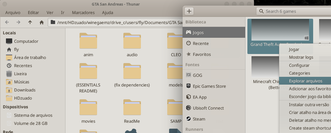 Opa Pessoal, Uso o Lutris para jogar alguns jogos antigos e alternativos, tipo Gta Sa porém não consigo instalar traduções quando são do tipo colar um arquivo na pasta raiz, parece q o lutris não reconhece e não aplica a tradução, agr msm estava tentando traduzir o Fallout New Vegas mas sem sucesso, se alguém souber como fazer as traduções funcionarem eu ficaria extremamente grato, uso o linux mint e no lutris ta configurado no wine-ge-8-26