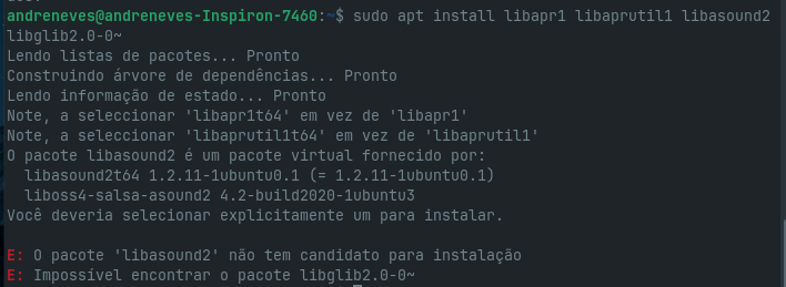 mas apesar disso os tres pacotes (libapr1, libaprutil1 e libglib2.0-0) continuam na lista de dependências, fora o ultimo pacote (libsound2) que dá erro