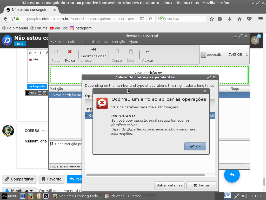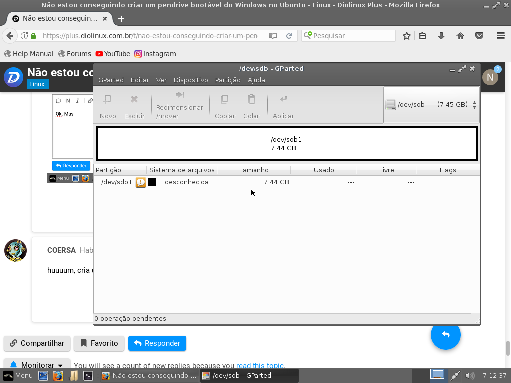 Ai ai. Vou tentar formatar esse pendrive de novo… Criar uma nova partição, tentar fazer pelo ultimo método. E se caso não dê certo. Eu tenho duas opções. Ou eu continuo com Linux OU, crio um pen drive bootável em um outro PC (que no meu caso, eu só tenho esse) ._.