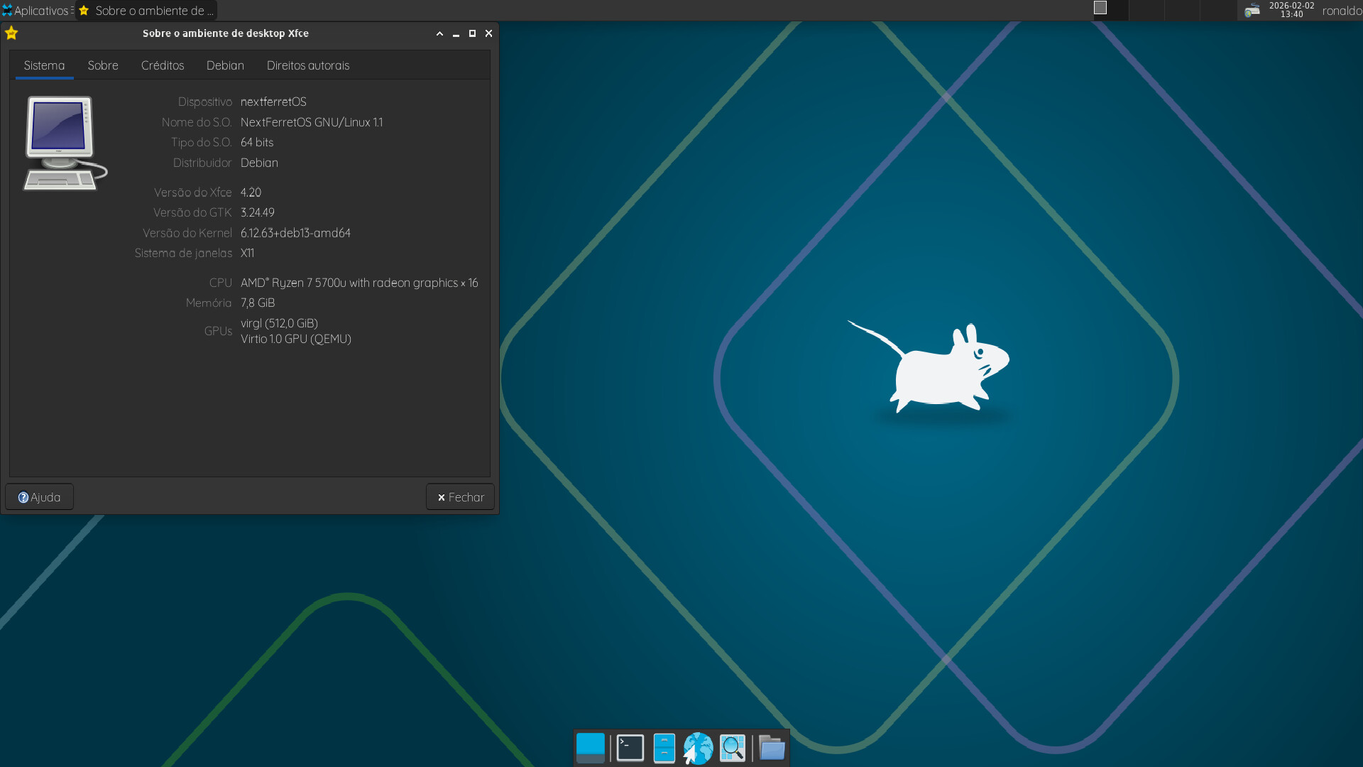 Eu vim apresentar minha distro,o NextFerretOS,baseado no debian 13 com algumas melhorias