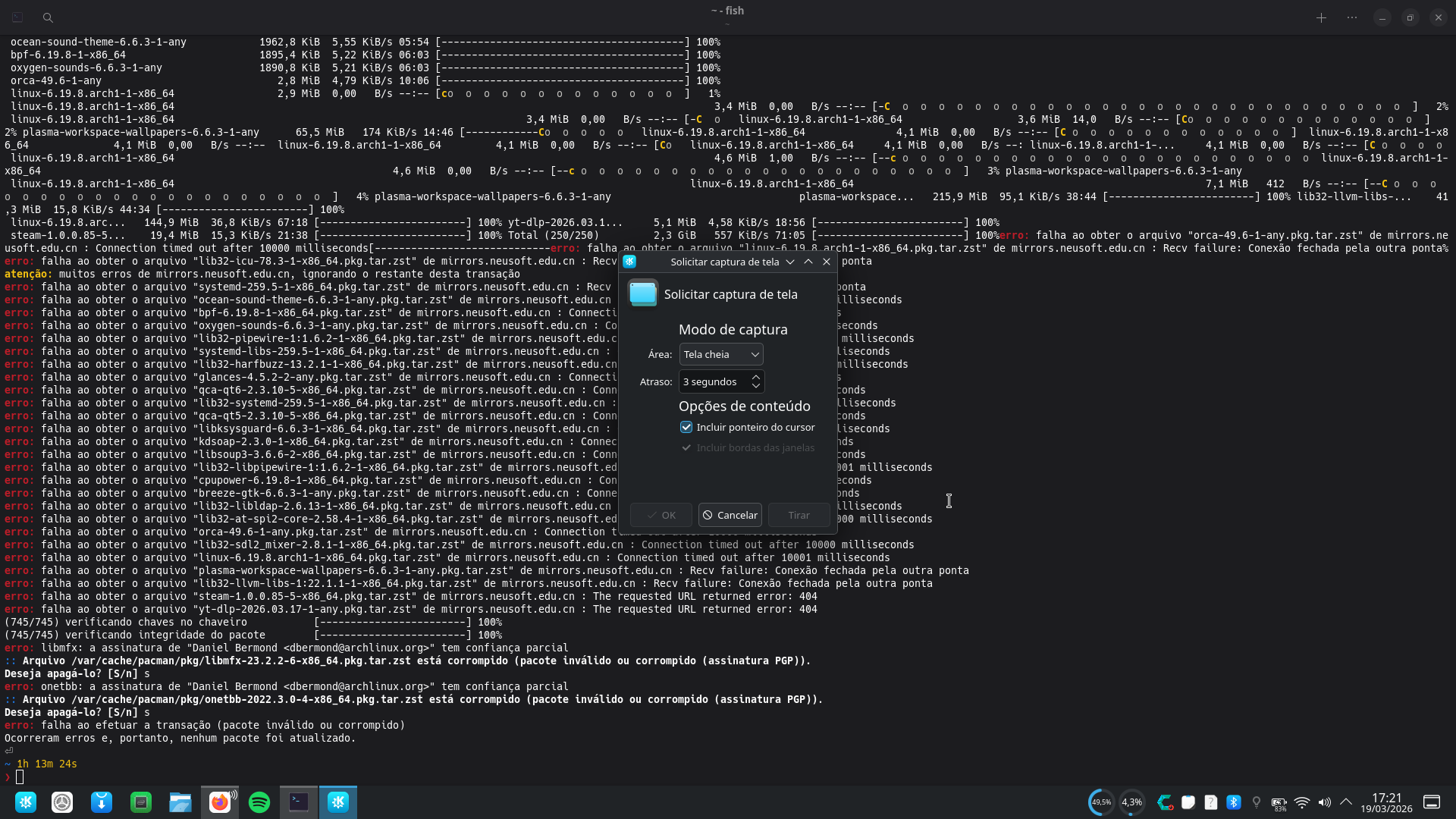 Boa tarde a todos. Estou com esse problema há 7 dias, tento atualizar meu sistema (cachyos - arch linux) porém há um conflitos entre os pacotes. Talvez eu tenho removido as dependências de algum pacote importante, sem ter percebido. Por favor, poderiam me ajudar?