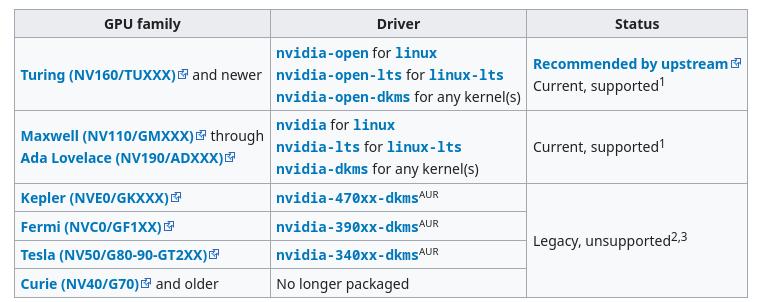 Da série turing pra frente, o recomendado da nvidia é sempre usar o nvidia-open, o módulo de kernel nvidia é recomendado para placas mais antigas.