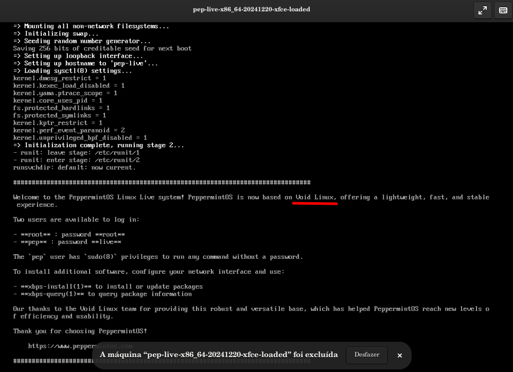 Ateh onde eu vi, gracas ao Rimana, o Peppermint me parece trazer toda uma suite de aplicacoes que procuram fazer o sistema ser mais facil de utilizar e manter. O Void eh uma distro DIY, mas ela funciona muito bem quando se ajeita ela direitinho, mas se alguem fizesse isso por padrao e trouxesse, sei la, por assim dizer, um Ubuntu so que Void, eu acho que seria um sucesso garantido.