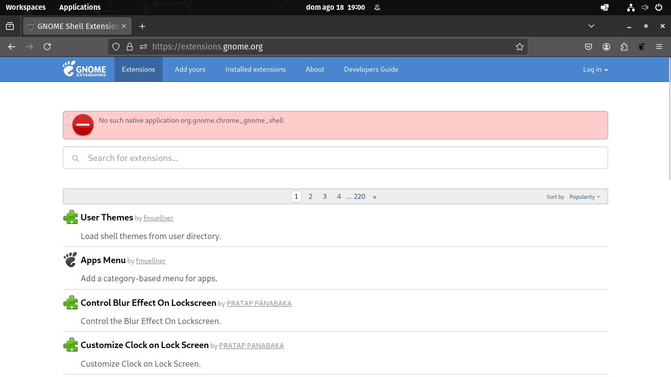 ai tipo, quando eu vou no https://extensions.gnome.org/ , aparece isso(obs: eu uso brave):