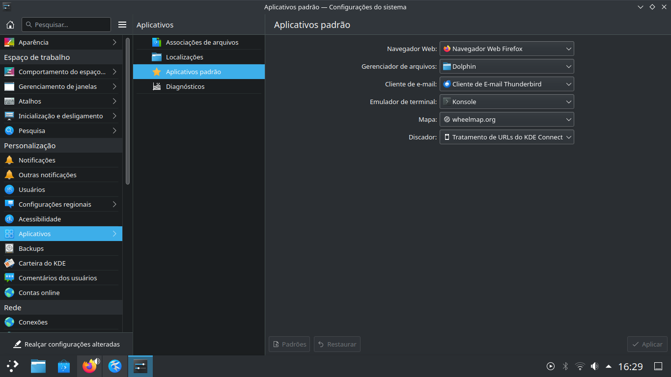 Não há opção para definir um player padrão de vídeos nas configurações, dá pra fazer isso somente por tipo de arquivo. Vi que ao instalar somente um player de vídeo (vlc no meu caso) o sistema já definiu ele para diversos formatos, porém seria interessante ter essa opção de definir um player padrão nas configurações. Pow tem uma opção para definir aplicativo de Mapa e não de um player?