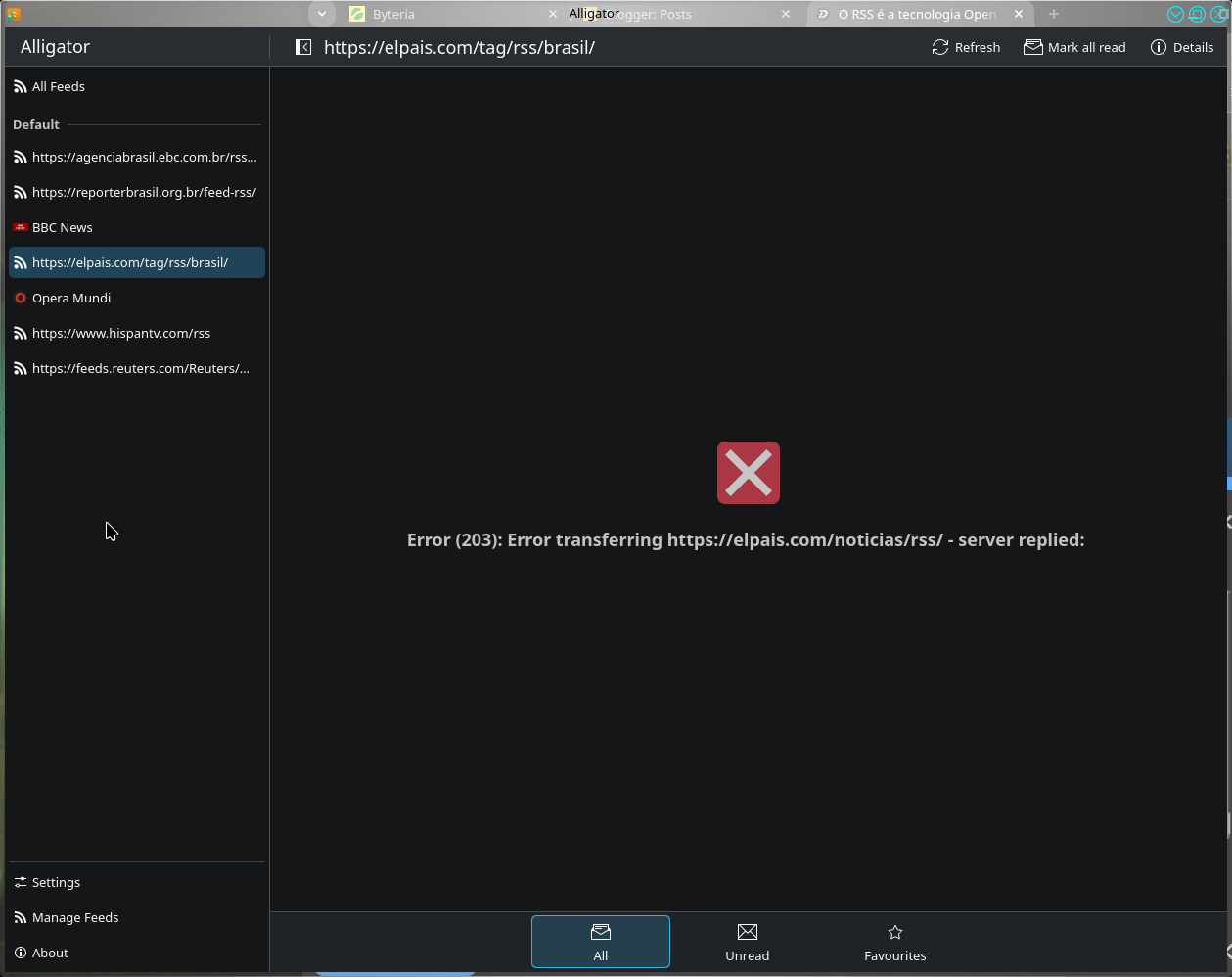 Mais importante ainda: você recebe todas as notícias publicadas por um site, e não apenas as que um algoritmo decide mostrar com base em interesses comerciais ou políticos. É por isso que acredito que convencer o maior número possível de pessoas a usar agregadores RSS é ainda mais urgente do que convertê-las ao uso de software livre em geral.