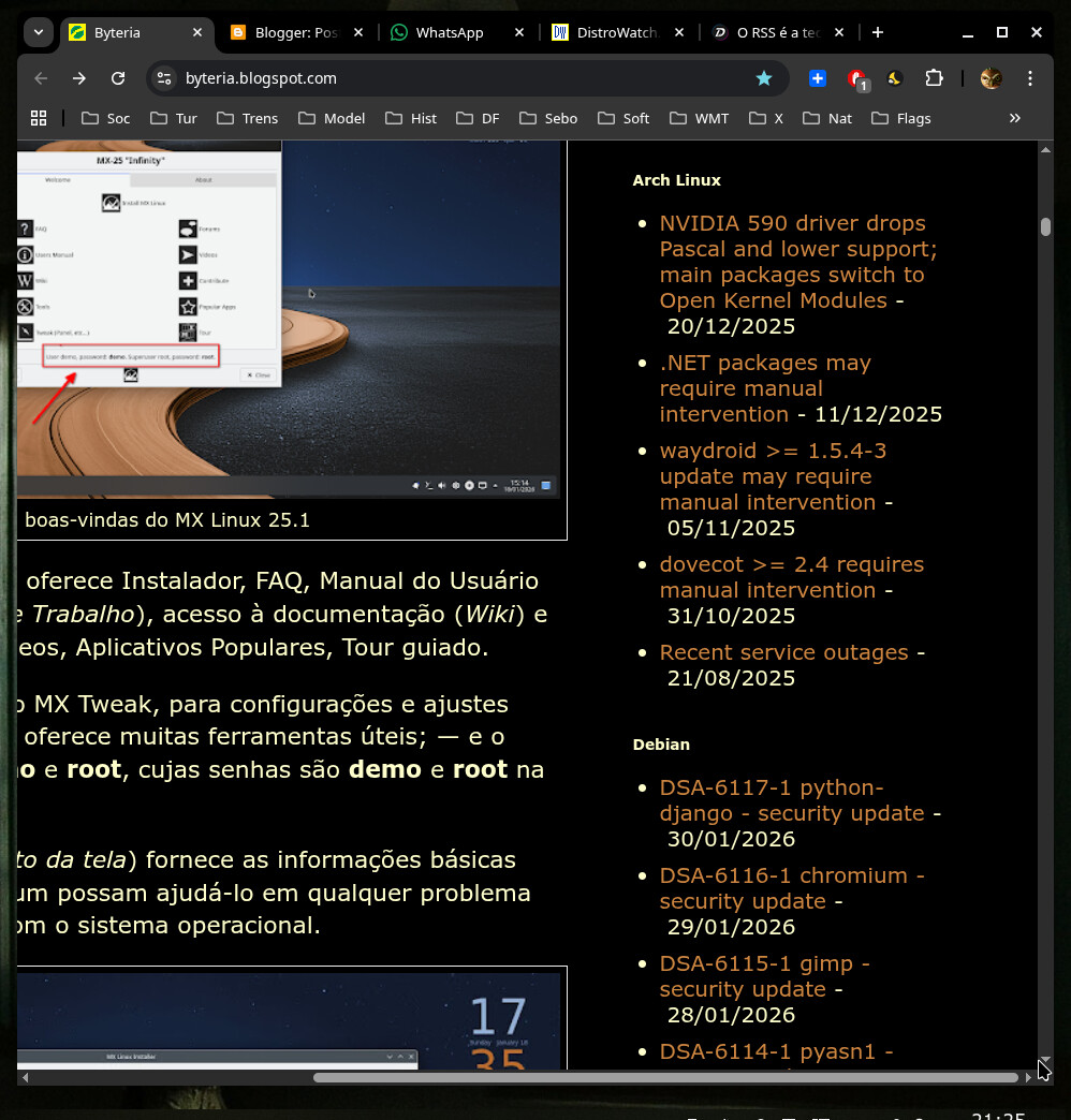 Nesses casos, apresentar o RSS via Thunderbird ou Evolution pode ser uma barreira. É por isso que, na prática, recomendo começar por algo mais simples e direto, como o Akregator ou outro leitor de RSS fácil de usar.