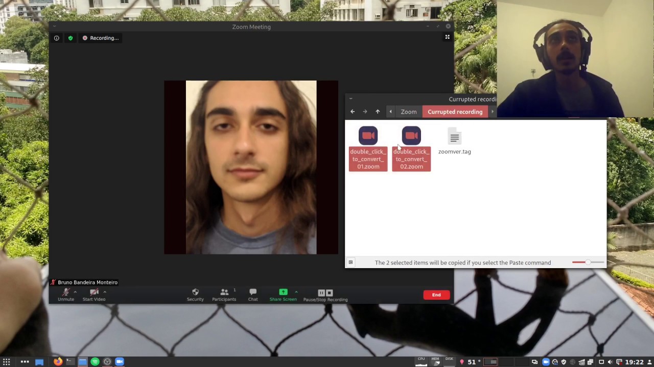 Estava fazendo uma gravação de uma reunião hoje no Zoom e o aplicativo caiu. Aí tive de sair e voltar para recomeçar a gravar - a segunda gravação foi ok na hora de converter, mas a primeira ficava em 0%. E agora?