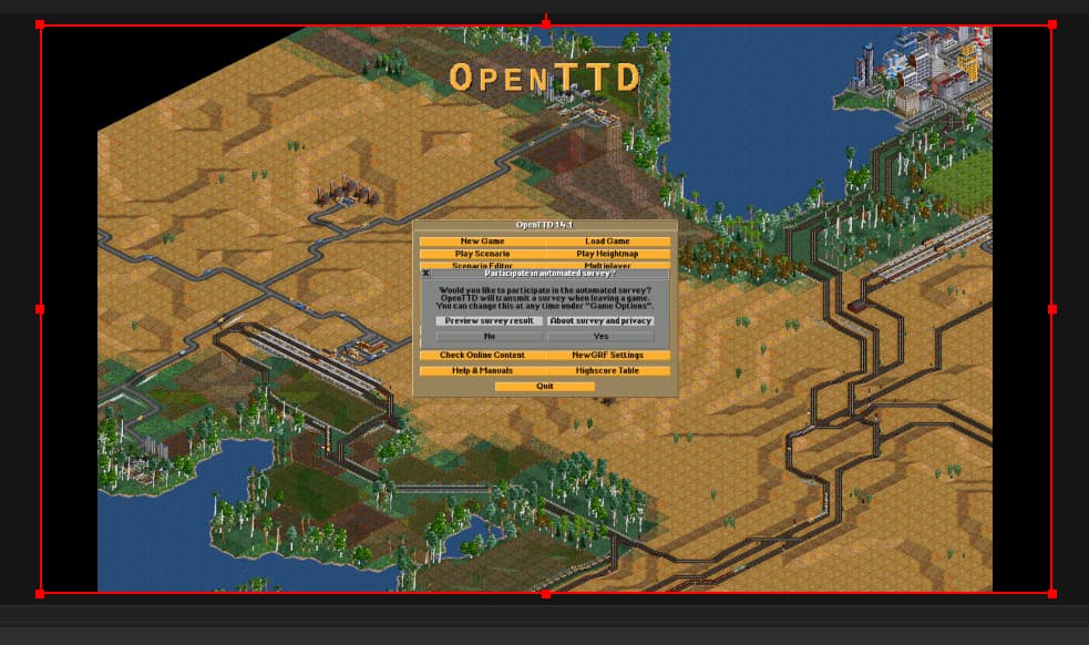Porém ao tentar capturar alguma coisa “instalada no sistema host” ele simplesmente além de capturar os decoradores da janela ainda captura uma zona morta gigantesca (testado com o OpenTTD da Steam):