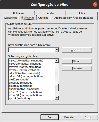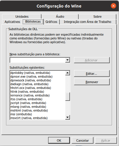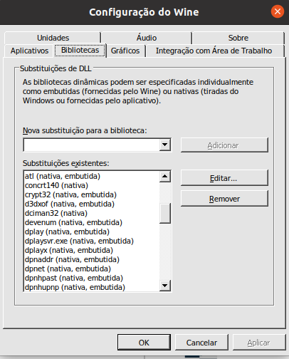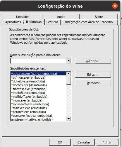 Tirei uns prints das configurações do wine no crossover, com as bibliotecas usadas e o que ele instala. vou mandar as outras em outras mensagens, porque só posso enviar 3 por vez