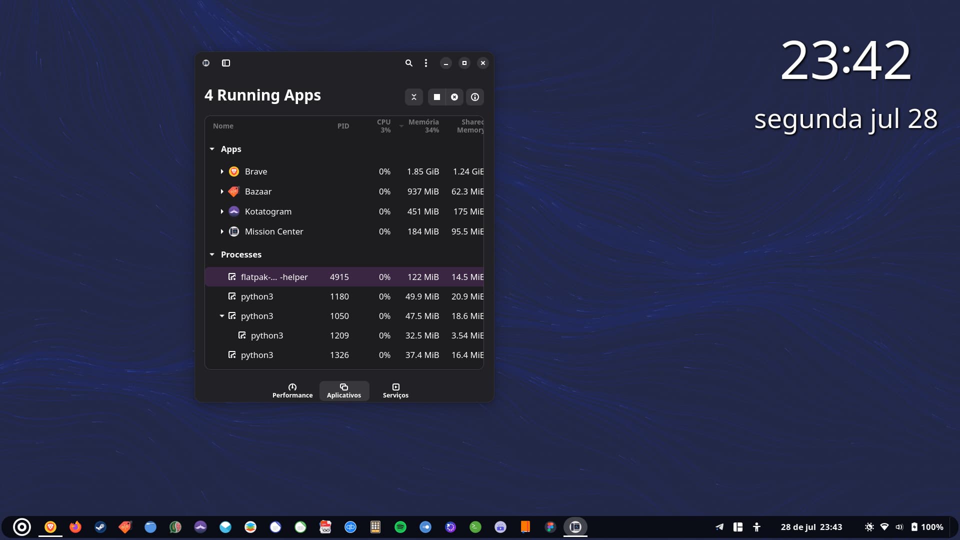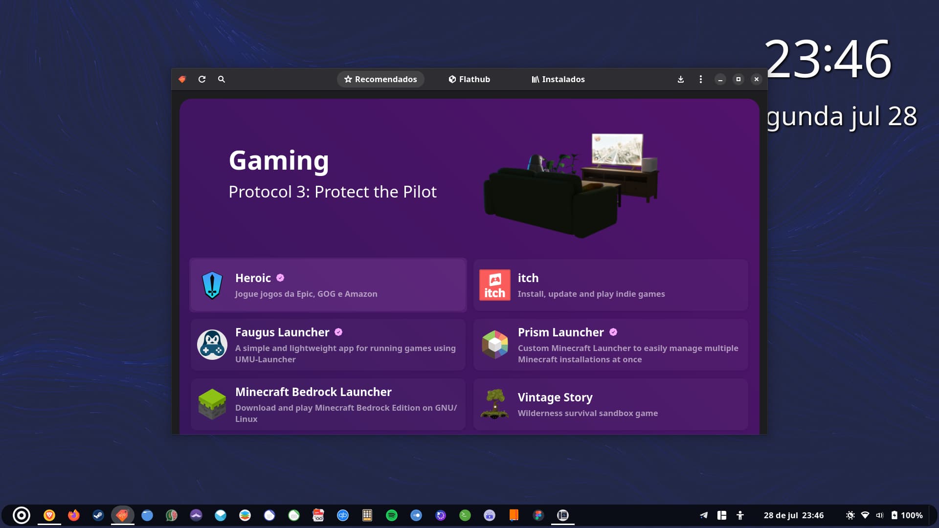 Flatpak é uma forma moderna de distribuir aplicativos, independente da distro. Cada app é empacotado com suas dependências, funcionando em qualquer sistema compatível com Flatpak. Você ativa o Flatpak e adiciona o repositório Flathub (o principal repositório de apps Flatpak) com: